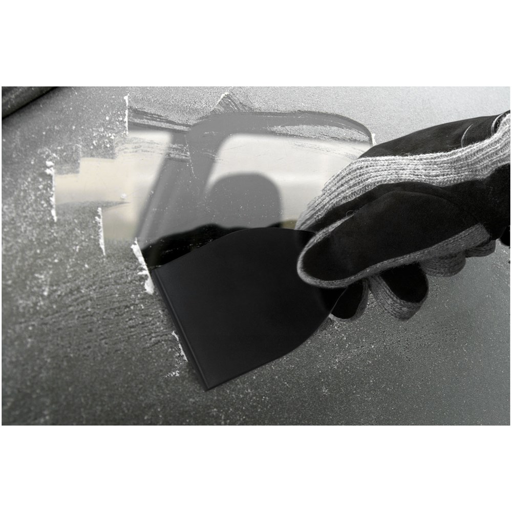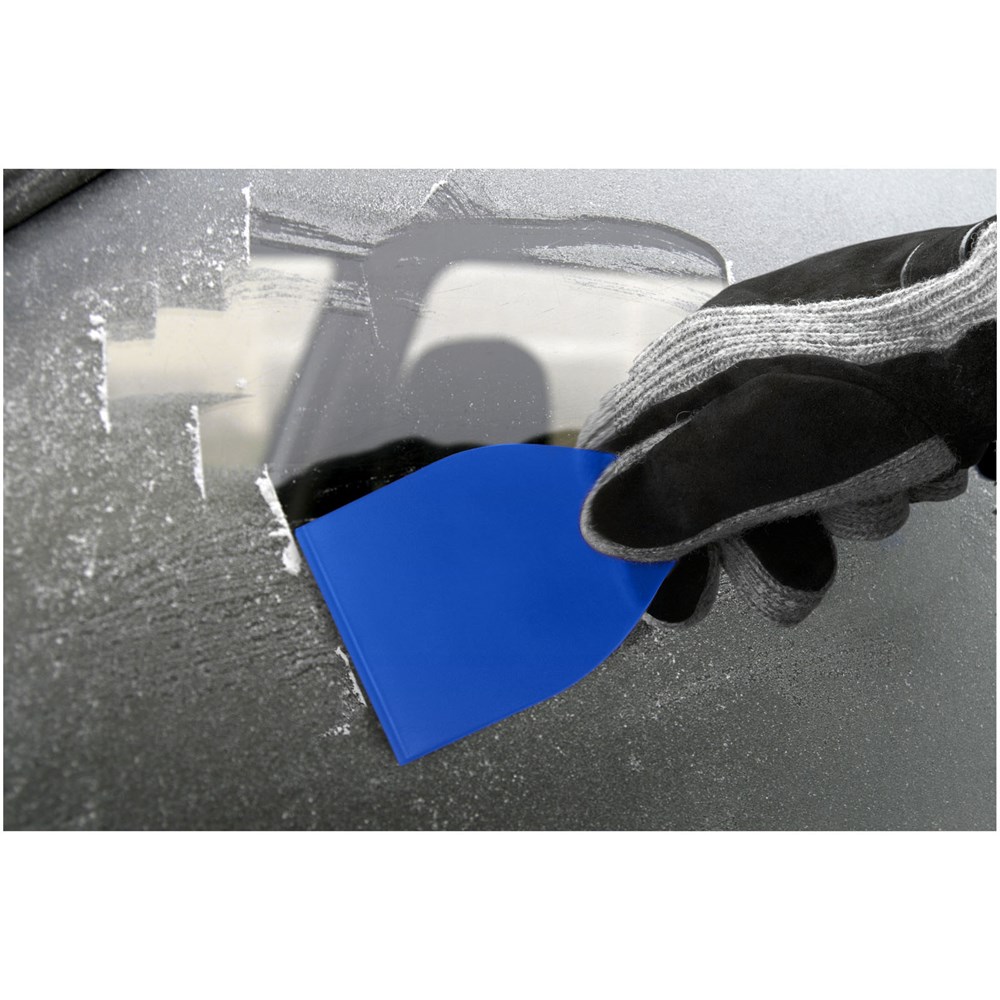 Eenvoudige handheld ruitenkrabber met een groot decoratiegebied. Het sterke handvat zorgt ervoor dat er genoeg druk kan worden uitgeoefend om al het ijs van de voorruit te verwijderen Gemaakt van gerecycled polystyreen plastic in het Verenigd Koninkrijk.