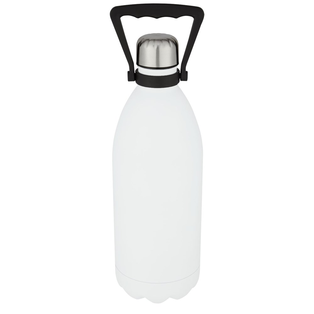 Extra grote vacuüm geïsoleerde roestvrijstalen fles met een iconisch ontwerp en een comfortabel handvat voor gemakkelijk dragen. Het geïsoleerde 18/8 roestvrijstaal houdt dranken meerdere uren warm of koud. BPA-vrij, getest en goedgekeurd volgens de Duitse voedselveiligheidswetgeving (LFGB). Getest en goedgekeurd voor ftalaten volgens de REACH-regelgeving. De inhoud is 1,5 liter. Handwas aanbevolen. Geleverd in een gerecycled kartonnen geschenkverpakking.