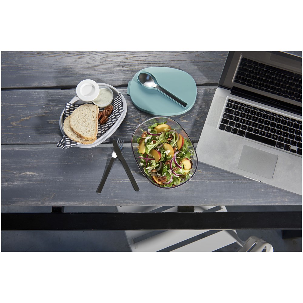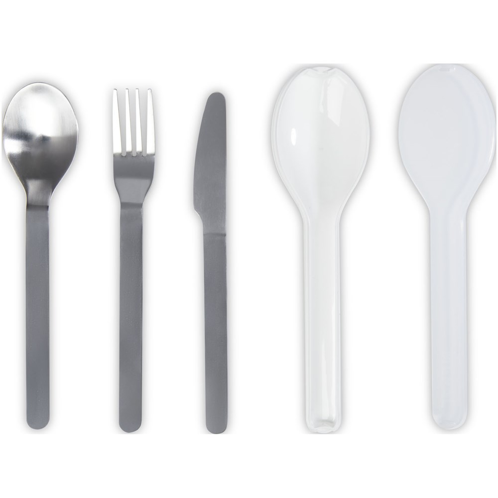 De stijlvolle en praktische Ellipse 3-delige bestekset van Mepal bestaat uit een mes, een vork en een lepel en is verpakt in een compacte plastic houder. Ideaal voor onderweg! Beschermd en hygiënisch verpakt in de container. Het bestek is gemaakt van roestvrij staal en kan na gebruik in de vaatwasser. BPA-vrij.