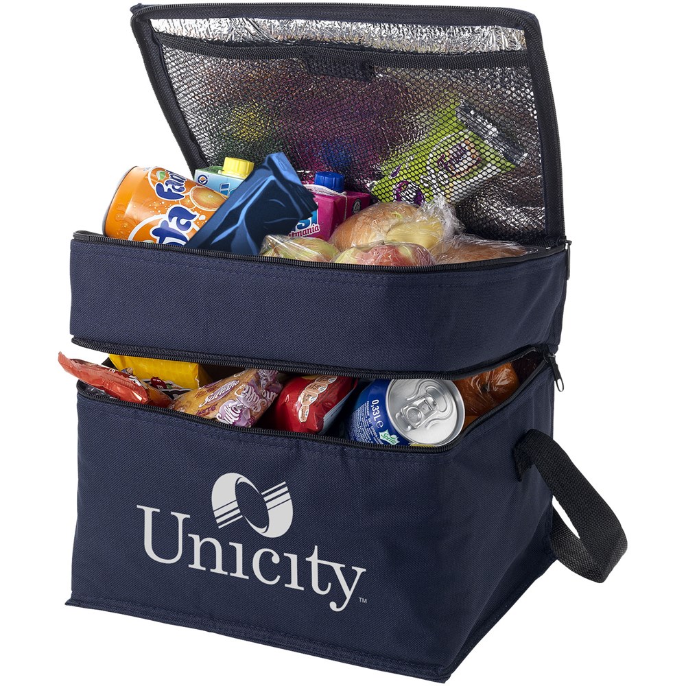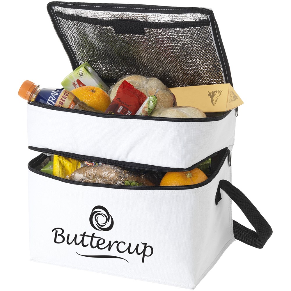 Wees altijd en overal verzekerd van gekoelde drankjes en snacks met de Oslo koeltas. De koeltas heeft twee aparte compartimenten met ritssluiting. Het bovenste deel is perfect voor het opbergen van kleine snacks, en het onderste deel is ideaal voor grotere boodschappen. De schouderband is verstelbaar, dus de tas is door iedereen makkelijk te dragen. De koeltas bestaat uit 600D polyester, een heavy-duty en duurzame stof.