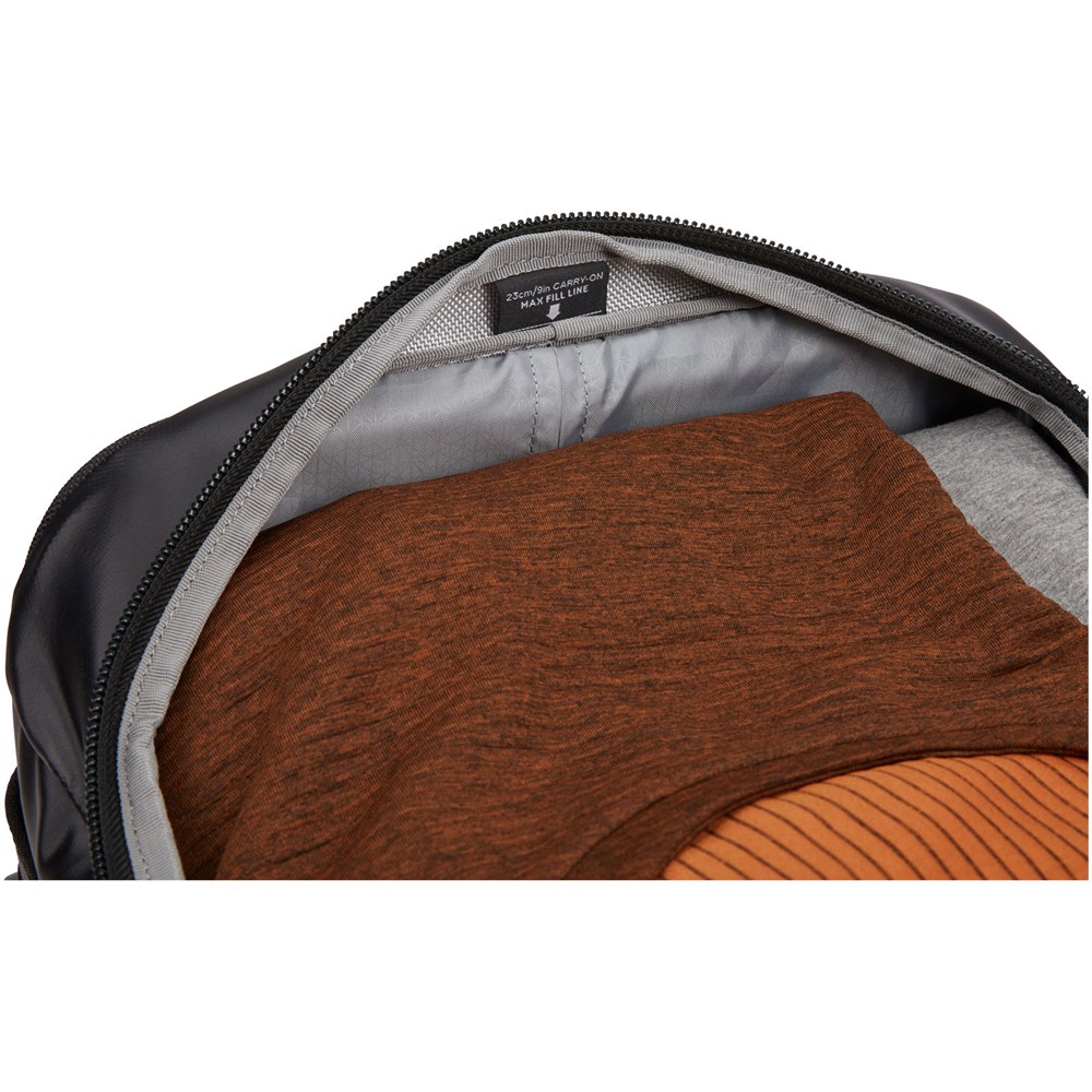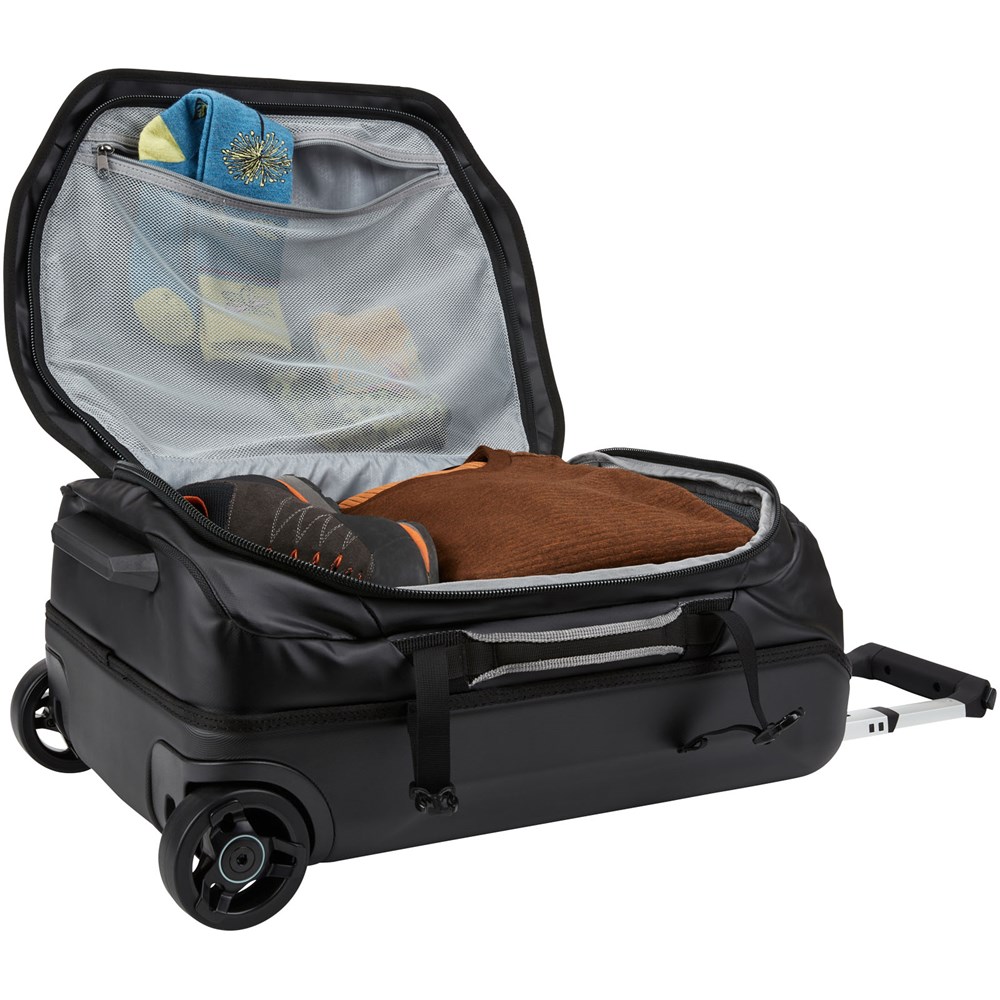 Weerbestendige reiskoffer ontworpen voor korte reizen en weekendjes weg. De duurzame stof tarpaulin beschermt de inhoud tegen de elementen. Om aan de vereisten voor handbagage te voldoen, mag ze niet verder worden gevuld dan de interne maximale vulmarkering. Als u reist zonder vereisten voor de afmetingen van een tas, is er 5 cm extra pakruimte beschikbaar.
