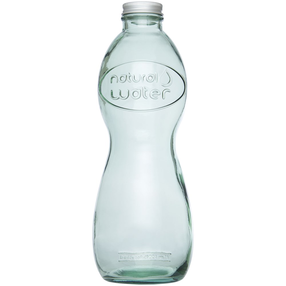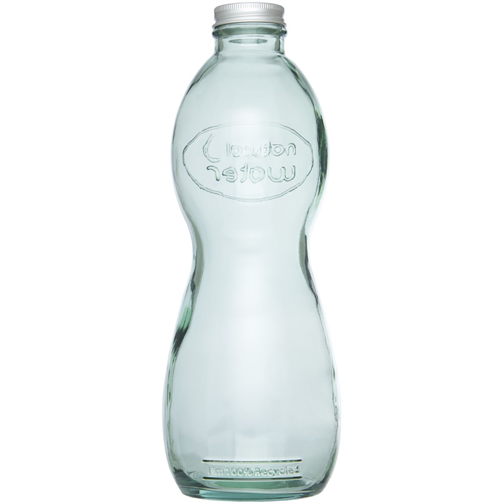 3-delige gerecyclede glazenset met een 1000 ml karaf en twee 400 ml kopjes. Gemaakt van 2 glazen flessen. Gerecycled glas wordt geproduceerd met minder energie, grondstoffen en toevoegingen, dan wat nodig is voor het maken van traditioneel glas.