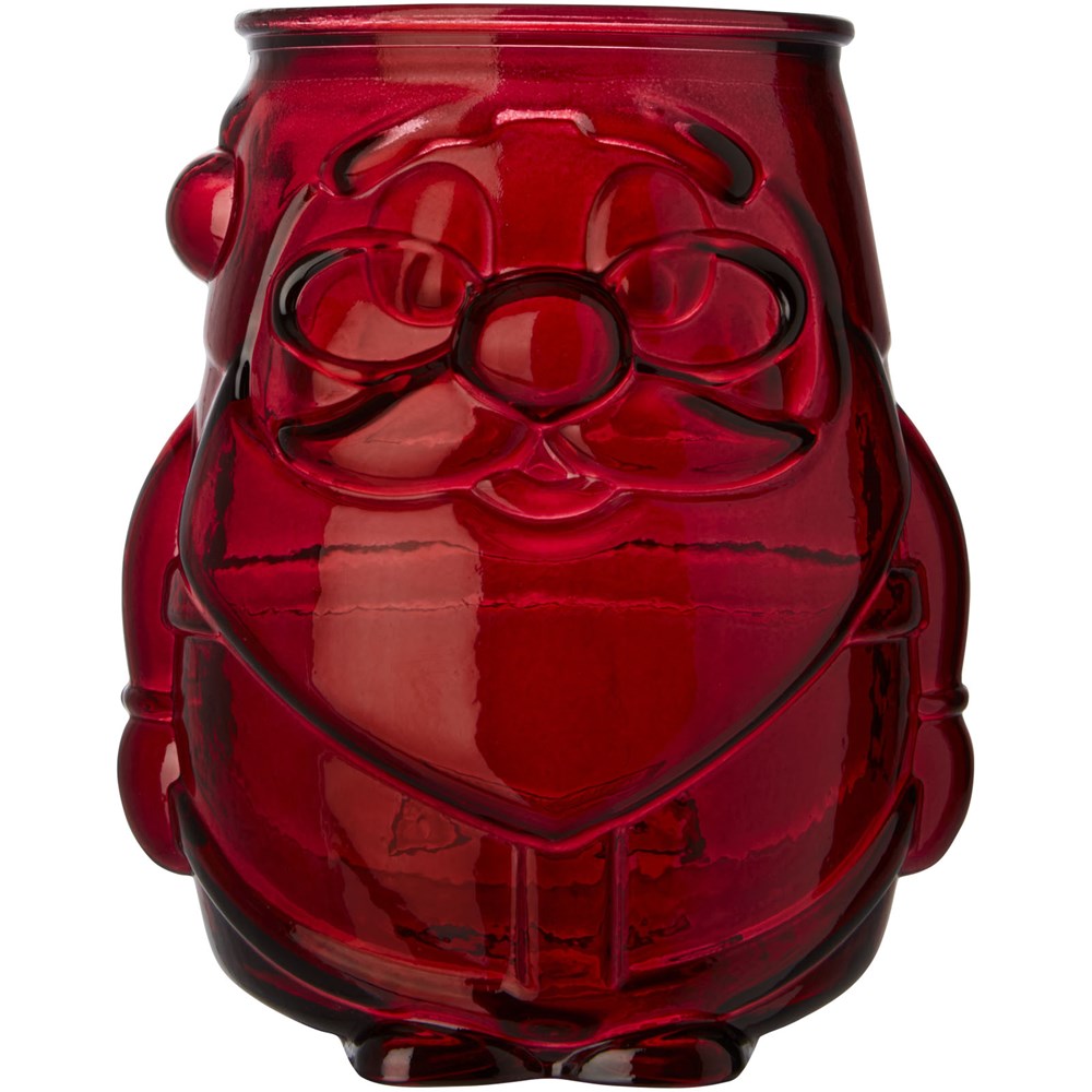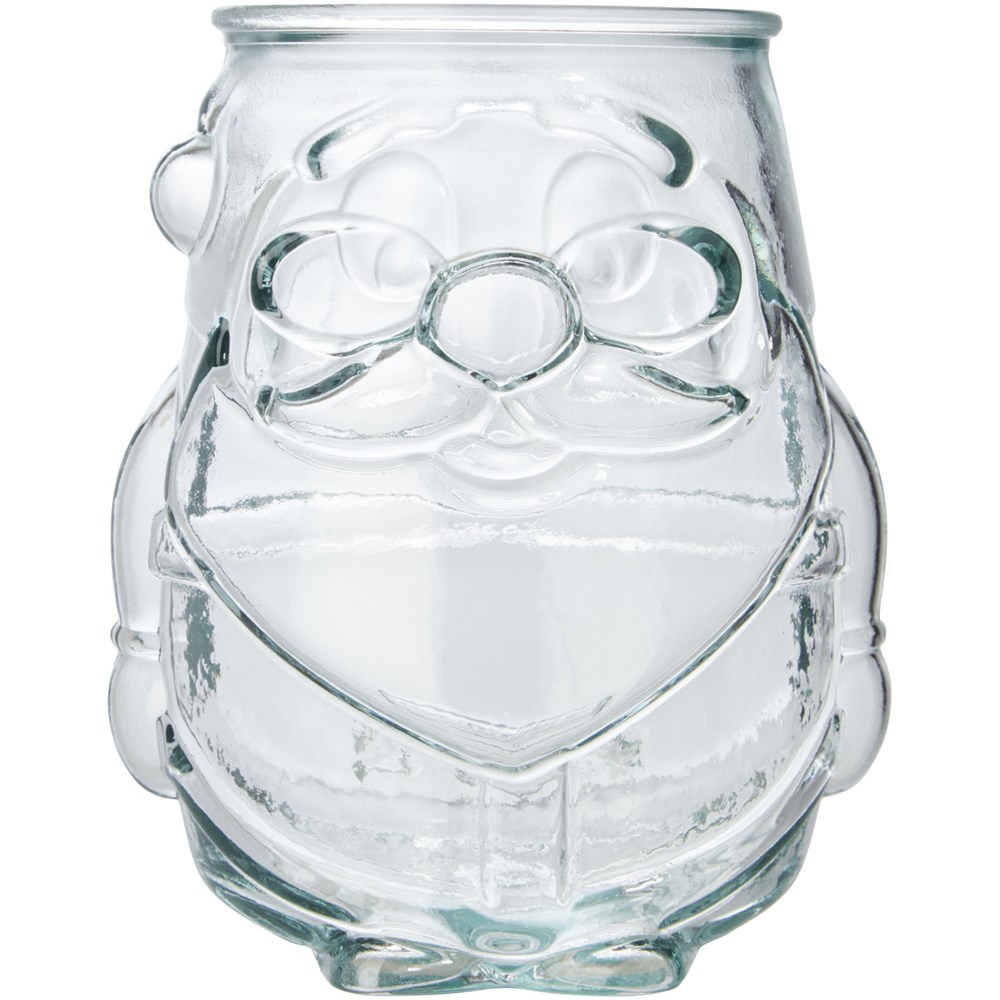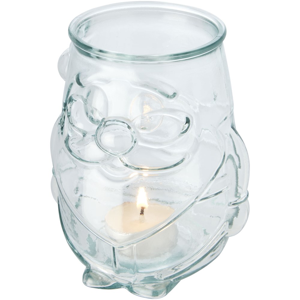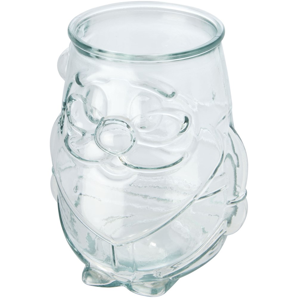 Theelichthouder van gerecycled glas in de vorm van een kerstman. Gemaakt van 1 glazen fles. Gerecycled glas wordt geproduceerd met minder energie, grondstoffen en toevoegingen, dan wat nodig is voor het maken van traditioneel glas. Theelichtje niet inbegrepen.