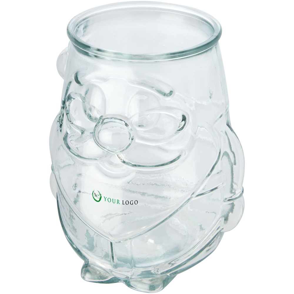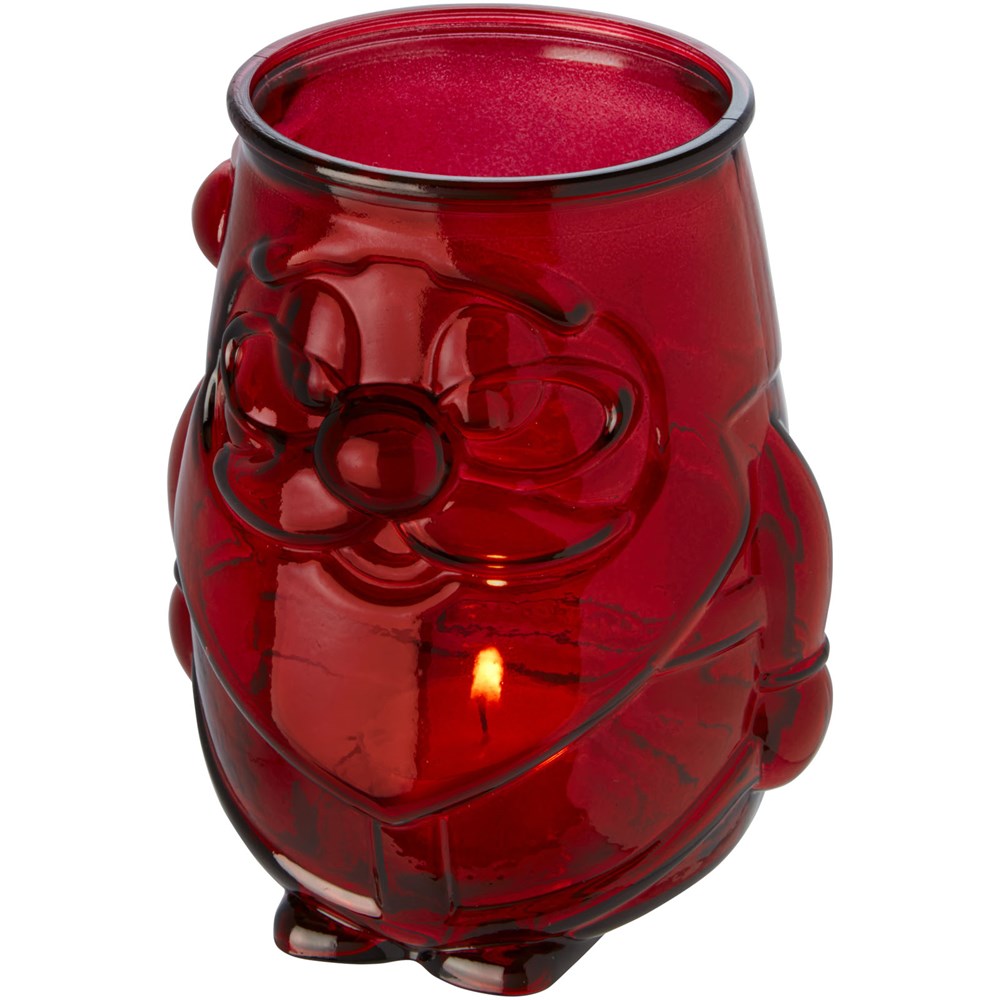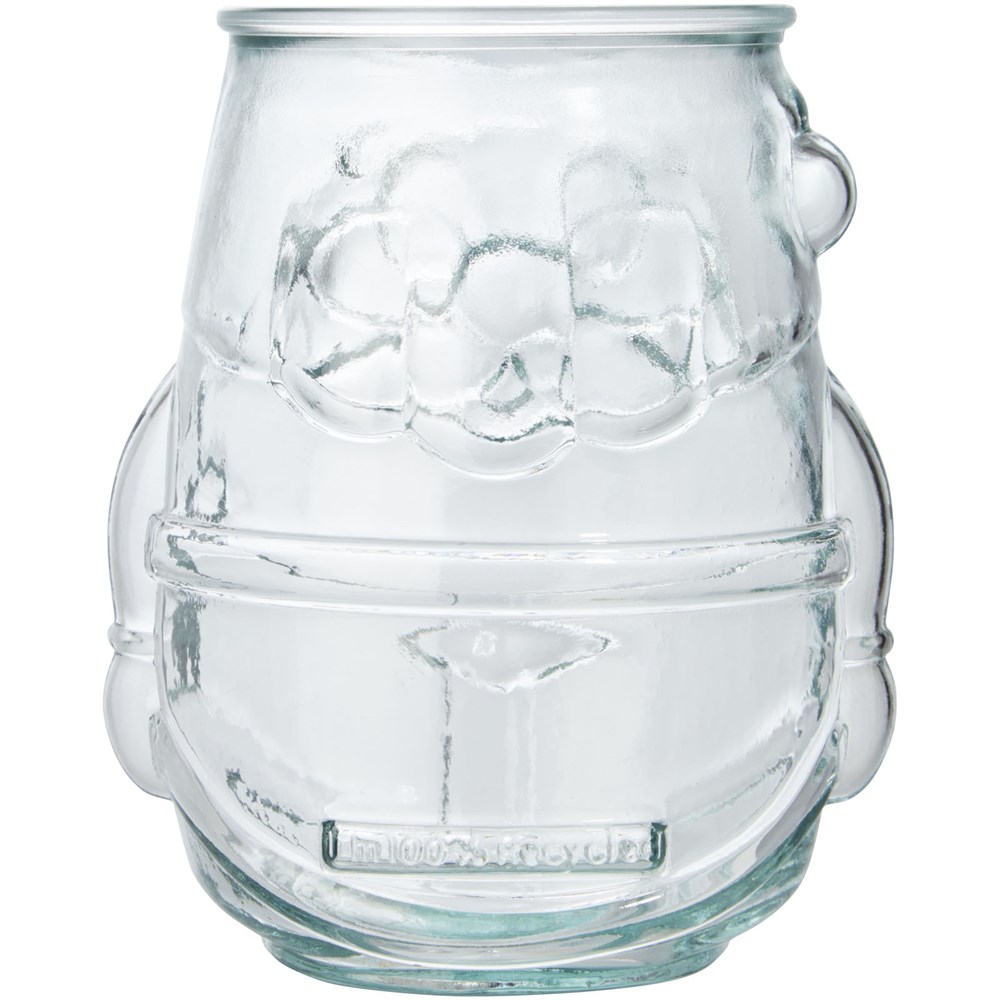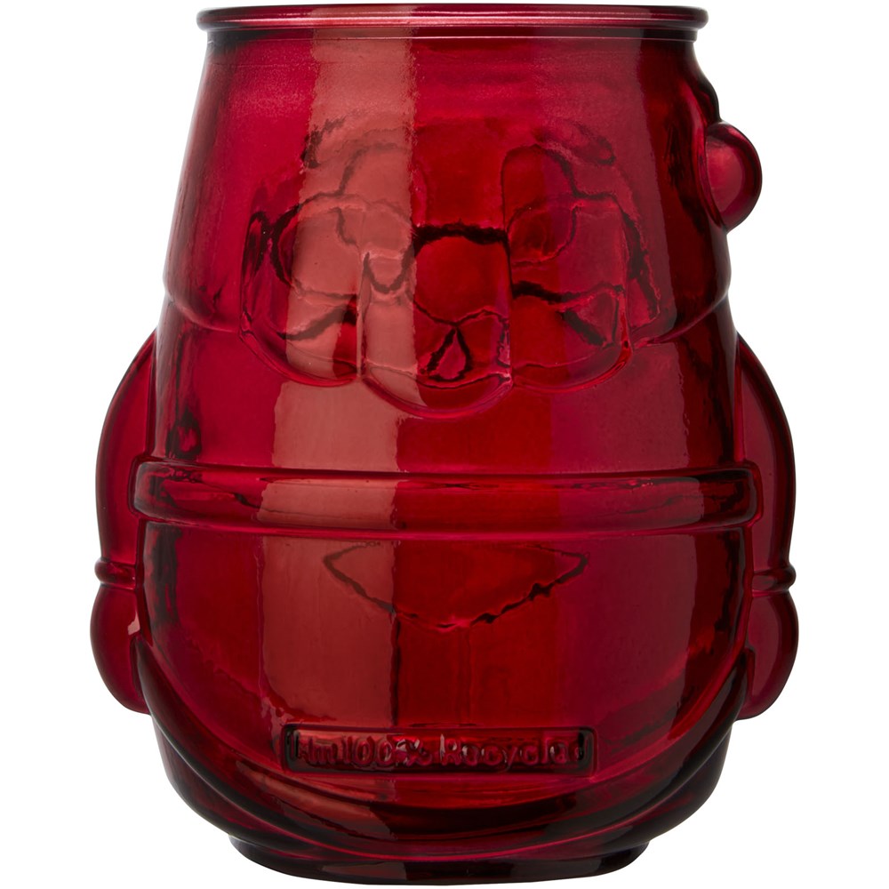 Theelichthouder van gerecycled glas in de vorm van een kerstman. Gemaakt van 1 glazen fles. Gerecycled glas wordt geproduceerd met minder energie, grondstoffen en toevoegingen, dan wat nodig is voor het maken van traditioneel glas. Theelichtje niet inbegrepen.