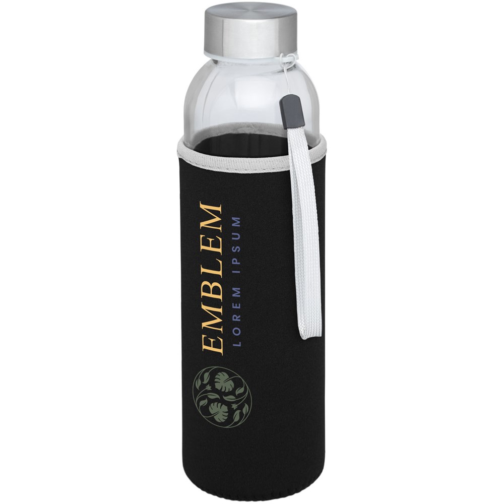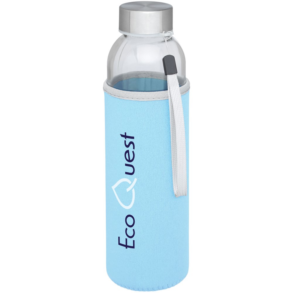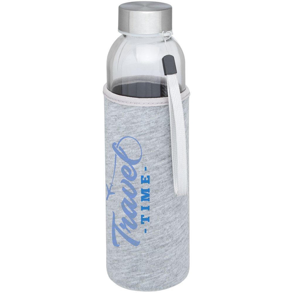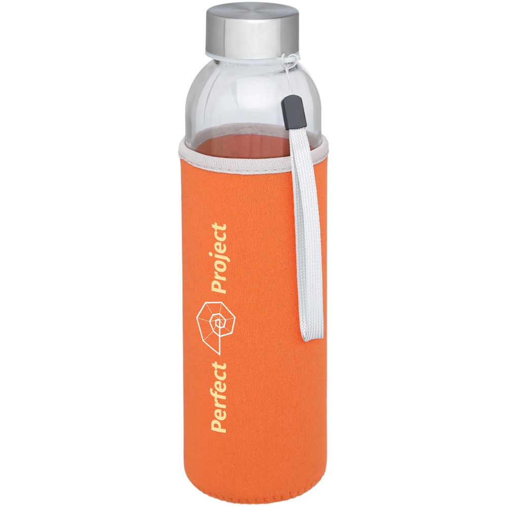 Enkelwandige glazen fles met schroefdop. De dop is voorzien van een bandje voor gemakkelijk dragen, evenals een neopreen hoes. Aanbevolen voor koude dranken. Niet geschikt voor de vriezer of magnetron. Volumecapaciteit is 500 ml. Geleverd in een geschenkverpakking.