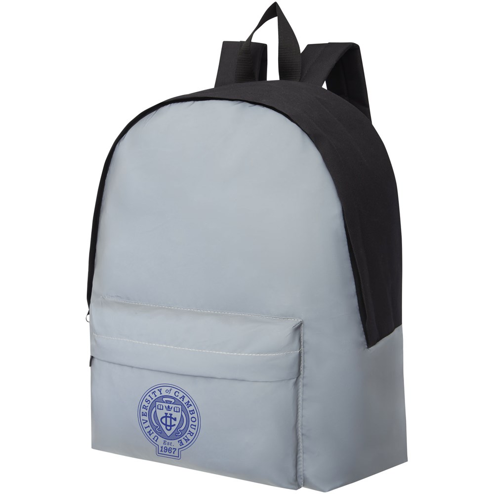 Reflecterende rugzak met EN 13356-certificering. Groot hoofdvak met ritssluiting en voorvak met ritssluiting. Met een volledig reflecterende voorkant voor zichtbaarheid en veiligheid onderweg. Geschikt voor een gewicht tot 10 kg.