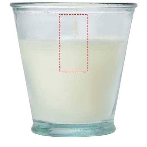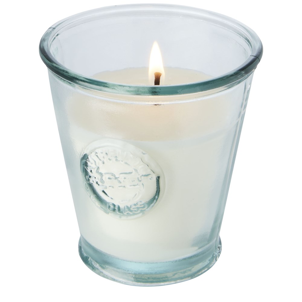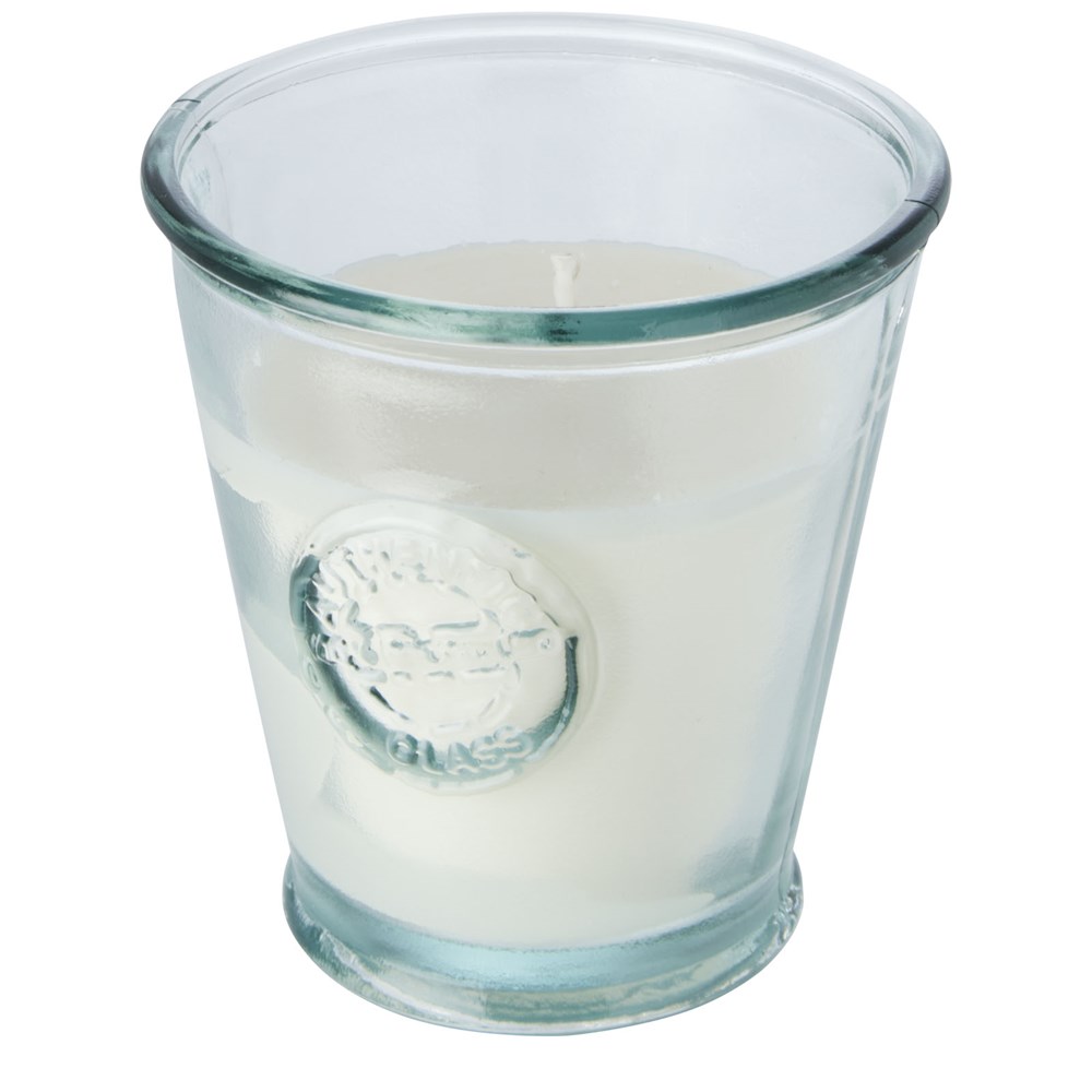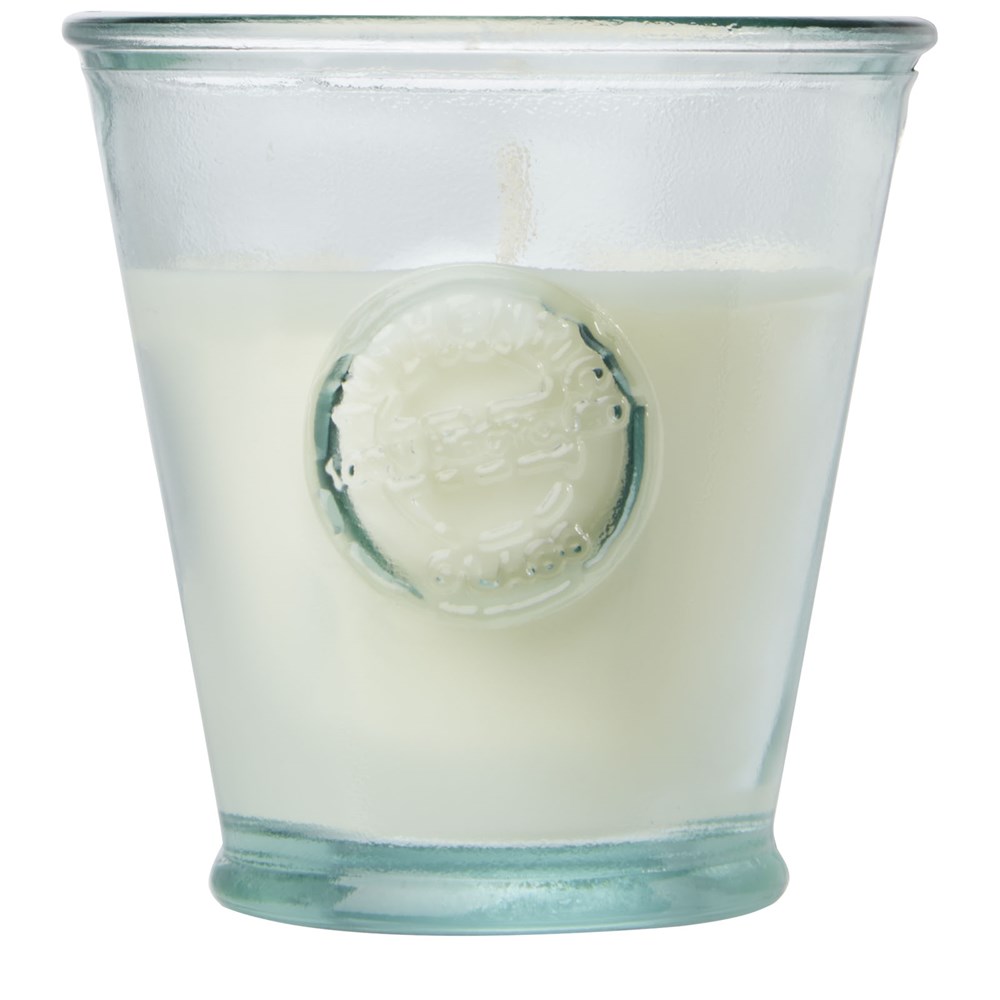 Natuurlijke, geurloze kaars gemaakt van sojabonen, een duurzame en hernieuwbare bron. De kandelaar is gemaakt van 100% gerecycled glas, afkomstig van 1 glazen fles. Gerecycled glas wordt geproduceerd met minder energie, grondstoffen en toevoegingen, dan wat nodig is voor het maken van traditioneel glas.