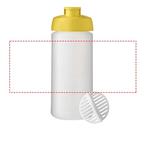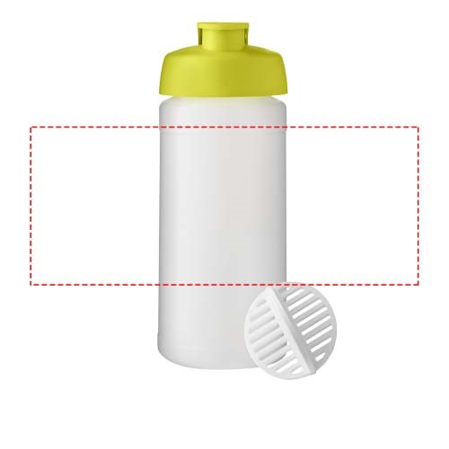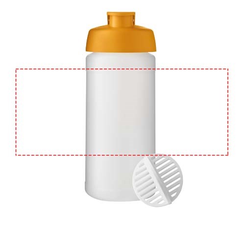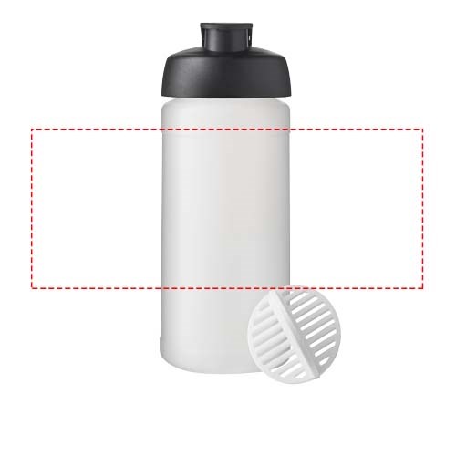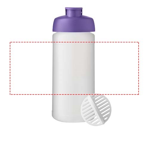 Enkelwandige drinkfles met schudbal voor het glad mengen van eiwitshakes. Heeft een morsvrije, open te trekken dop met flip sluiting Volumecapaciteit is 500 ml. Gemaakt in het Verenigd Koninkrijk.
