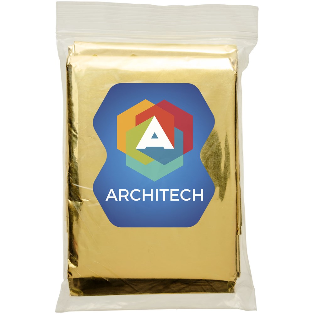 Nooddeken dat bescherming kan bieden tegen hitte, kou en vochtigheid. Het is perfect voor kampeeruitstapjes, sportevenementen en noodsituaties. Wanneer de zilveren kant tegen het lichaam ligt, biedt het bescherming tegen de kou. De gouden kant tegen het lichaam houdt je koel. Het deken is 160x210 cm. Hij is gereguleerd, getest en gecertificeerd als een Medisch Hulpmiddel Klasse I in overeenstemming met de Richtlijn Medische Hulpmiddelen MDD 93/42/EEG van 14 juni 1993.