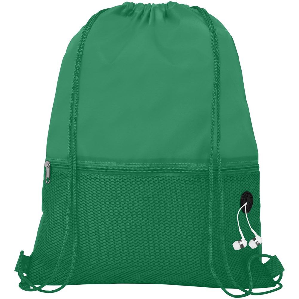 Rugzak met hoofdvak met trekkoordsluiting in bijpassende kleur. Beschikt over een mesh voorvak met rits en een opbergvak voor oortjes. Geschikt voor een gewicht tot 5 kg.