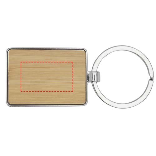 Rechthoekige sleutelhanger van premiumkwaliteit, gemaakt van bamboe met metalen behuizing uit zinklegering, geleverd in een bruine gerecycleerd kraft papieren envelop. De grootte van de sleutelhanger is 5 x 3 cm. Gemaakt voor lasergraveren.