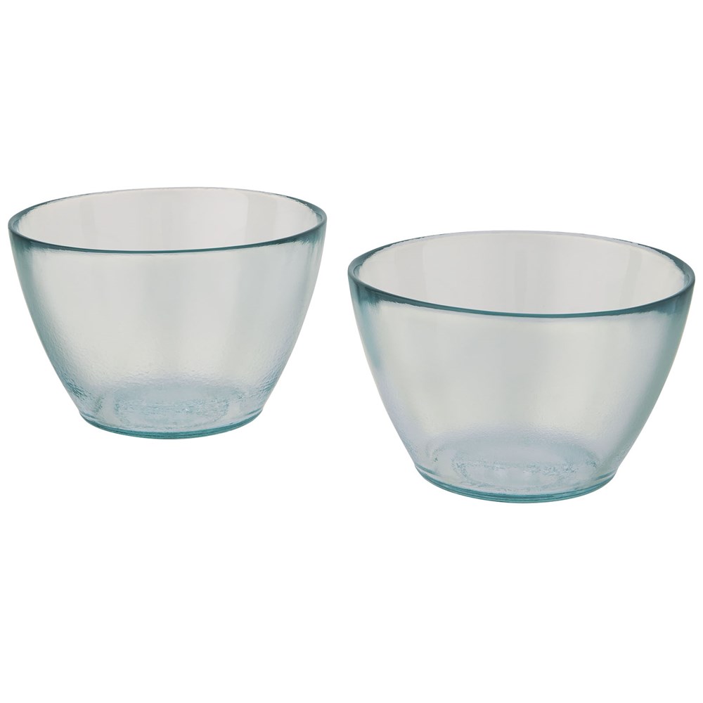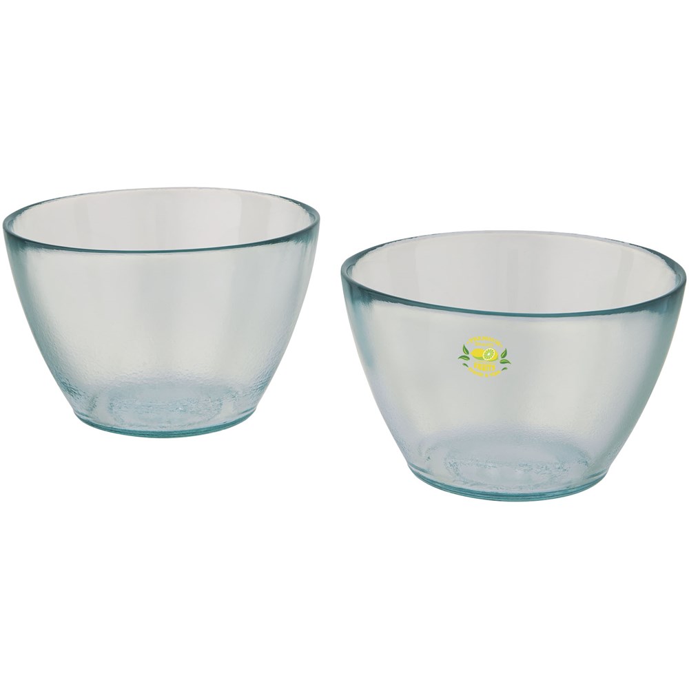 2-delige kommenset van 100% gerecycled glas met een inhoud van 700 ml, ideaal voor het serveren van salades. De kommen zijn gemaakt van gerecyclede glazen flessen. Gerecycled glas wordt geproduceerd met minder energie, grondstoffen en toevoegingen, dan wat nodig is voor het maken van traditioneel glas. Vaatwasserbestendig.