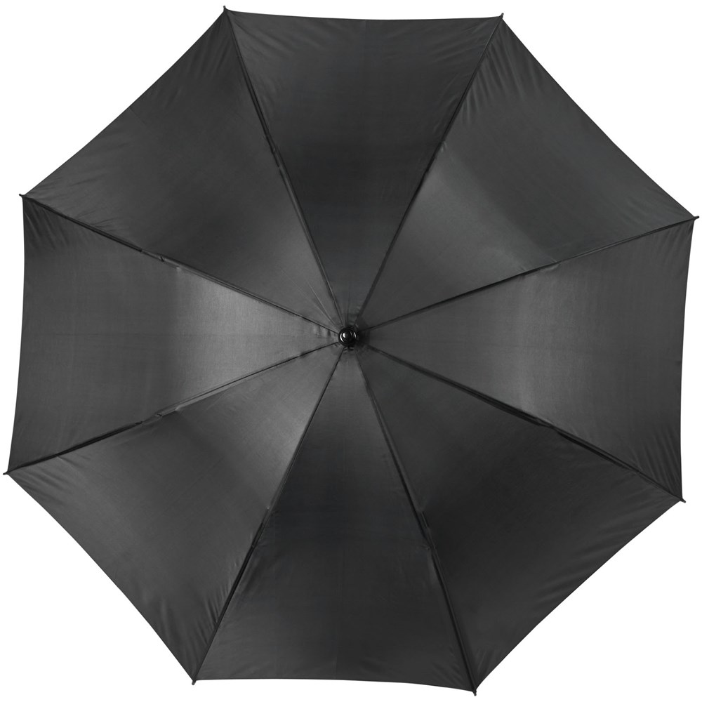 Handmatig openende paraplu met polyester scherm. Hij heeft een stevige metalen schacht en hoogwaardig frame volledig uit glasvezel, en biedt maximale flexibiliteit bij winderige omstandigheden. Gebogen EVA handvat, kunststof uiteinden en bovenzijde. Verkrijgbaar in de meest diverse moderne kleuren en met een groot decoratievlak op alle panelen.