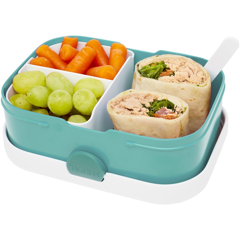 Lunchbox met een kom en een vork. Geschikt voor 4 boterhammen. Makkelijk te openen en schoon te maken. Capaciteit is 750 ml. Vaatwasserbestendig. BPA vrij.