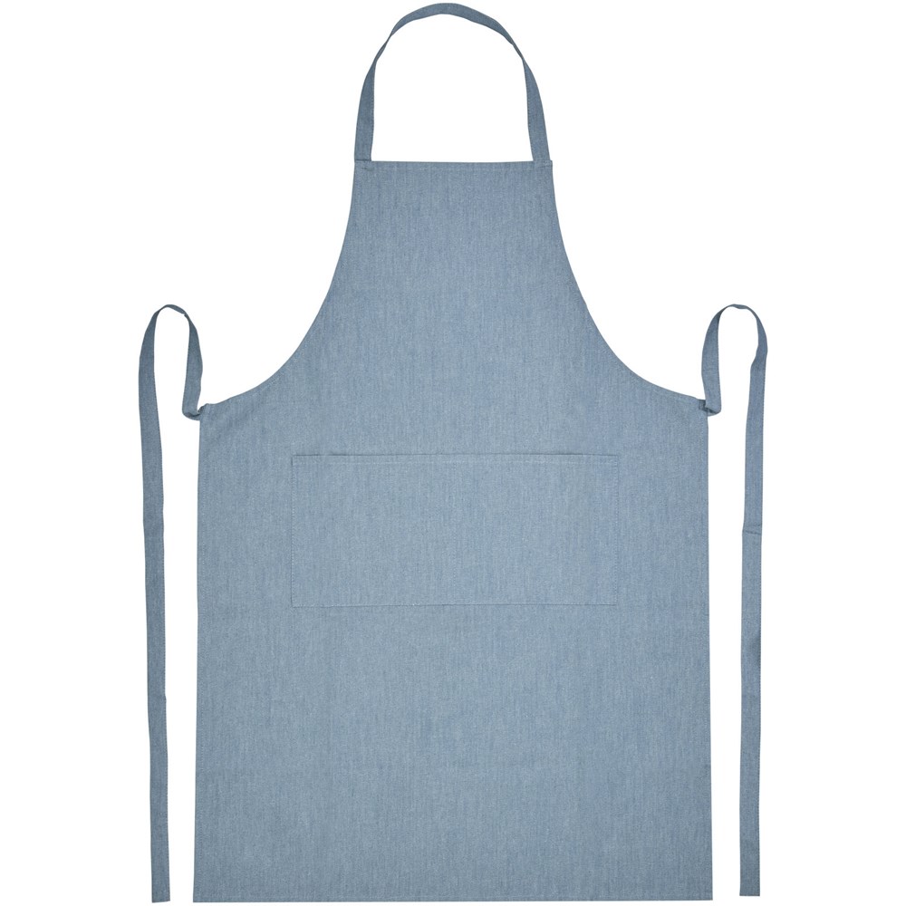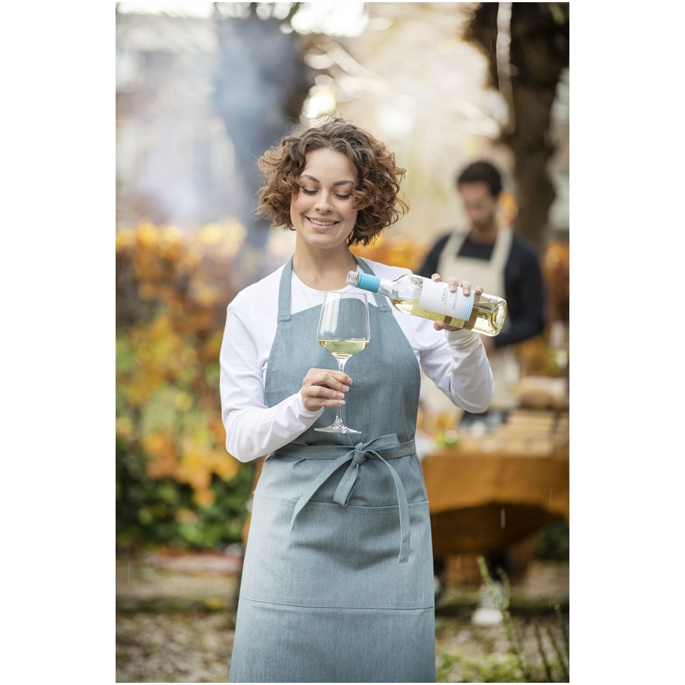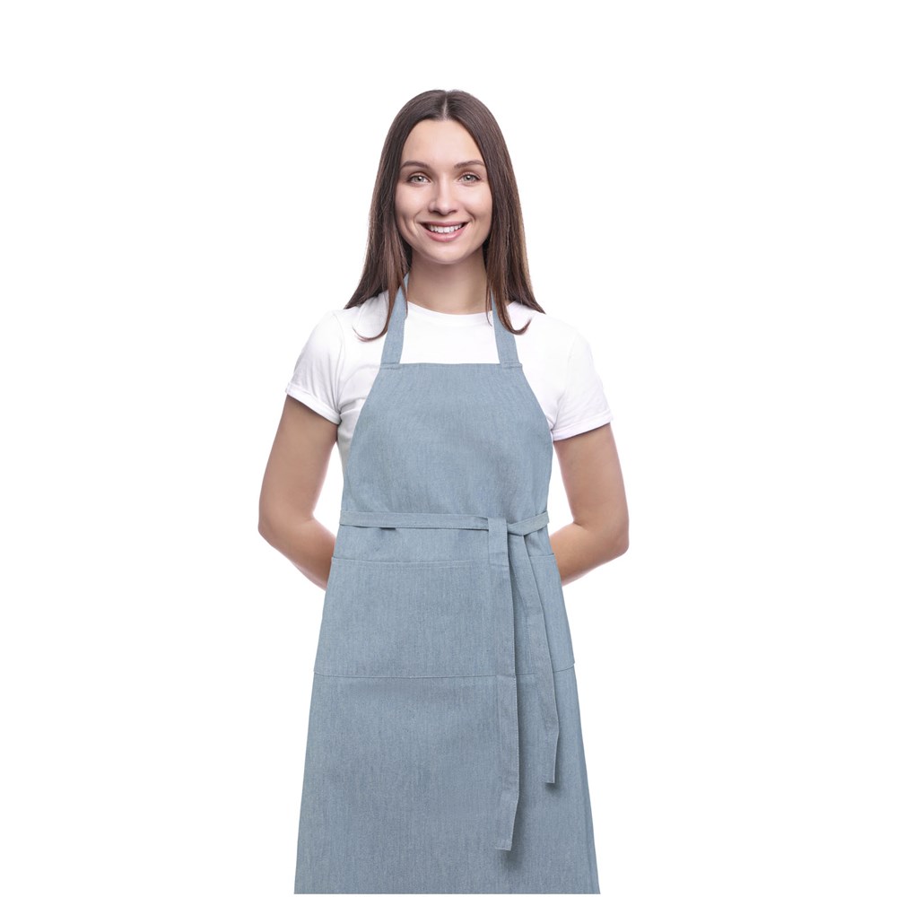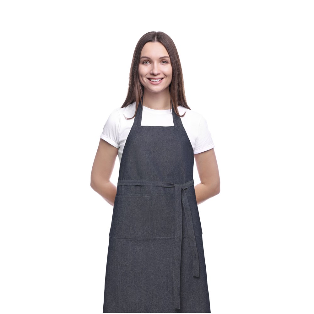 Het Jeen schort is een geweldige milieuvriendelijke metgezel in de keuken! Het is gemaakt van 100% gerecycled denim van 200 g/m², waardoor het dik en stevig is en een comfortabel te dragen duurzaam schort is. Beschikt over 2 aangrenzende zakken (elk 22 x 20 cm) en een bandsluiting van 1 meter aan de achterkant.