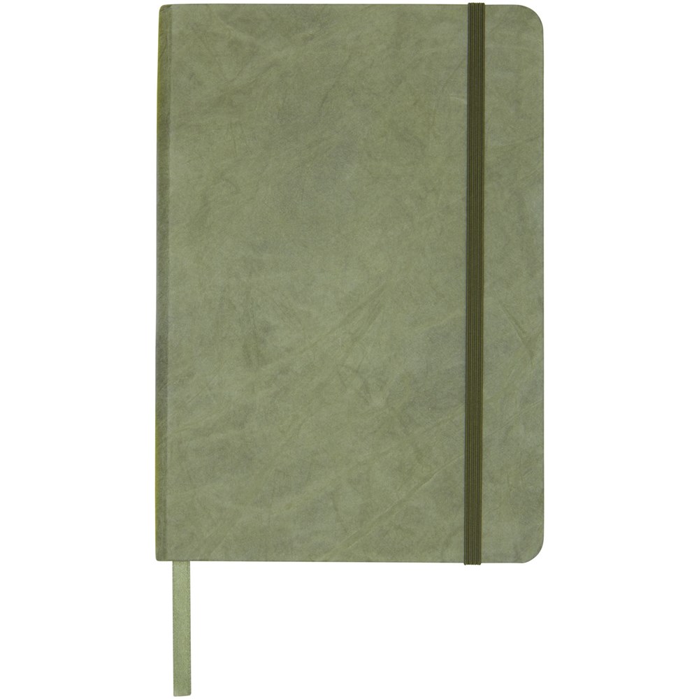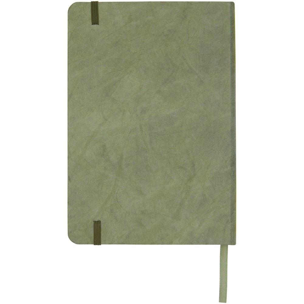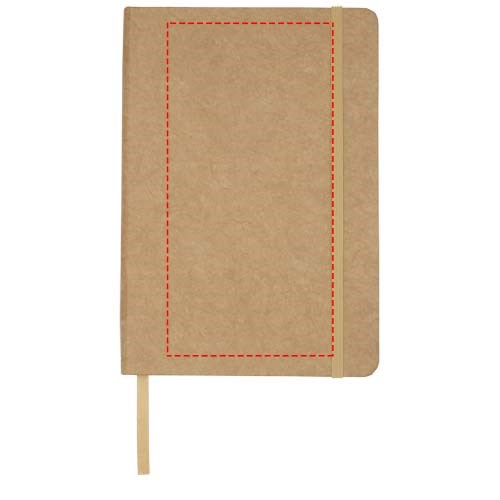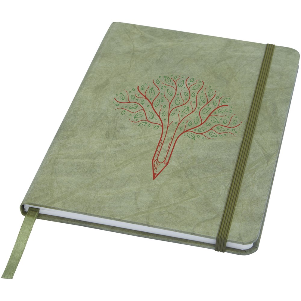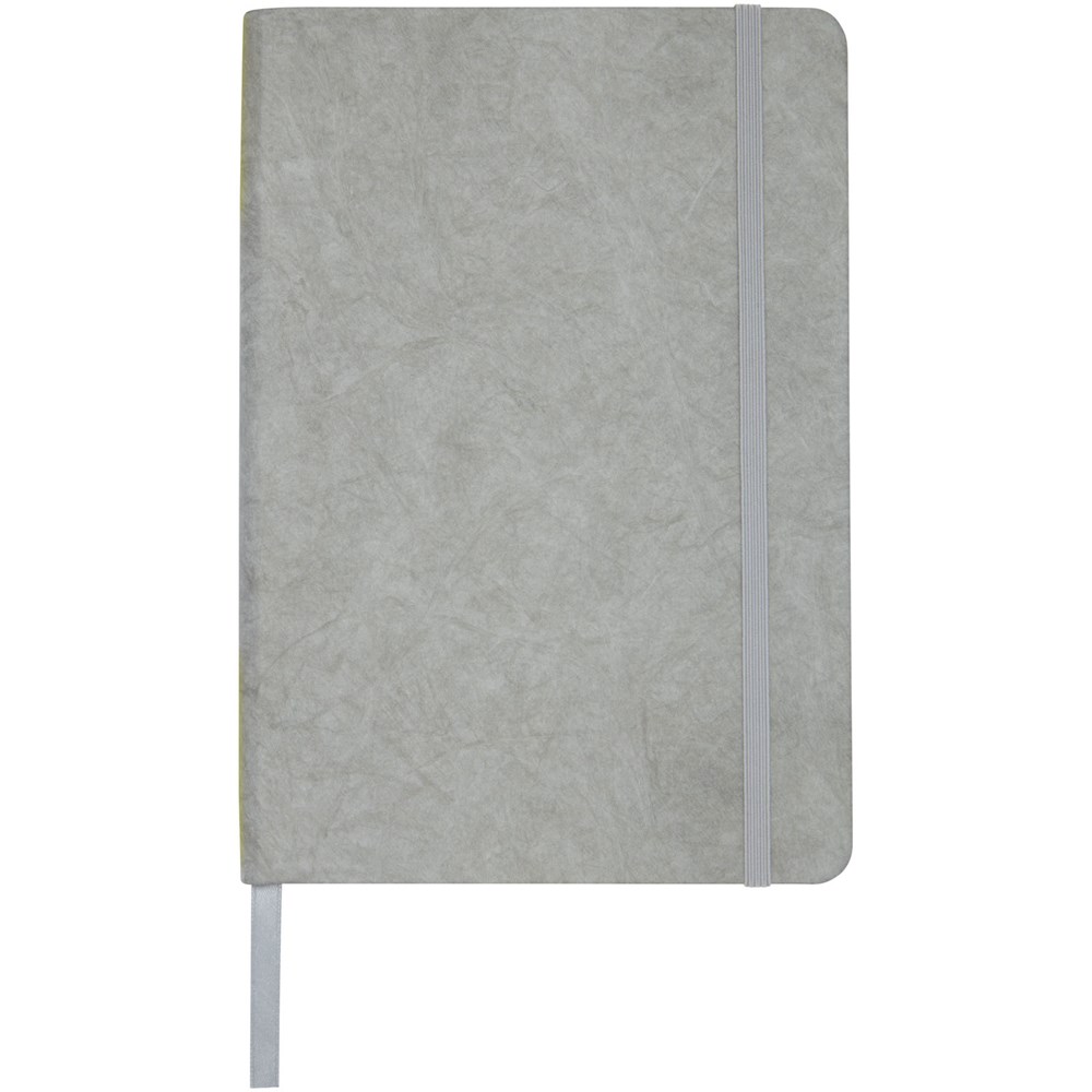 Scheurbestendig notitieboek in A5 formaat met binnenpagina's gemaakt van steen. Steenpapier is 100% boomvrij en het productieproces verbruikt minder energie in vergelijking met gerecycled of nieuw pulppapier. Het is waterbestendig, zodat gemorste vloeistoffen gemakkelijk kunnen worden afgeveegd. Met bijpassend kleurlint en elastische band en 60 vellen 120 g/m² gelijnd steenpapier. Verpakt in een kartonnen hoes.