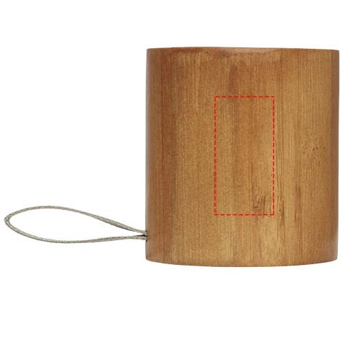 Bamboe Bluetooth®-speaker met een 3W uitgang en een uitstekende geluidskwaliteit. Dankzij de ingebouwde 500 mAh batterij kun je de speaker op één lading tot 3 uur gebruiken, bij maximaal volume. Bereik van Bluetooth® 5.0 is tot 10 meter. Micro USB-oplaadkabel inbegrepen. Verpakt in een geschenkverpakking en geleverd met een gebruiksaanwijzing (beide gemaakt van duurzaam materiaal). Aangezien bamboe een natuurlijk product is, kan ieder item enigszins variëren in kleur en grootte, wat van invloed kan zijn op het uiterlijk van de speaker.