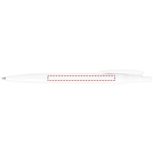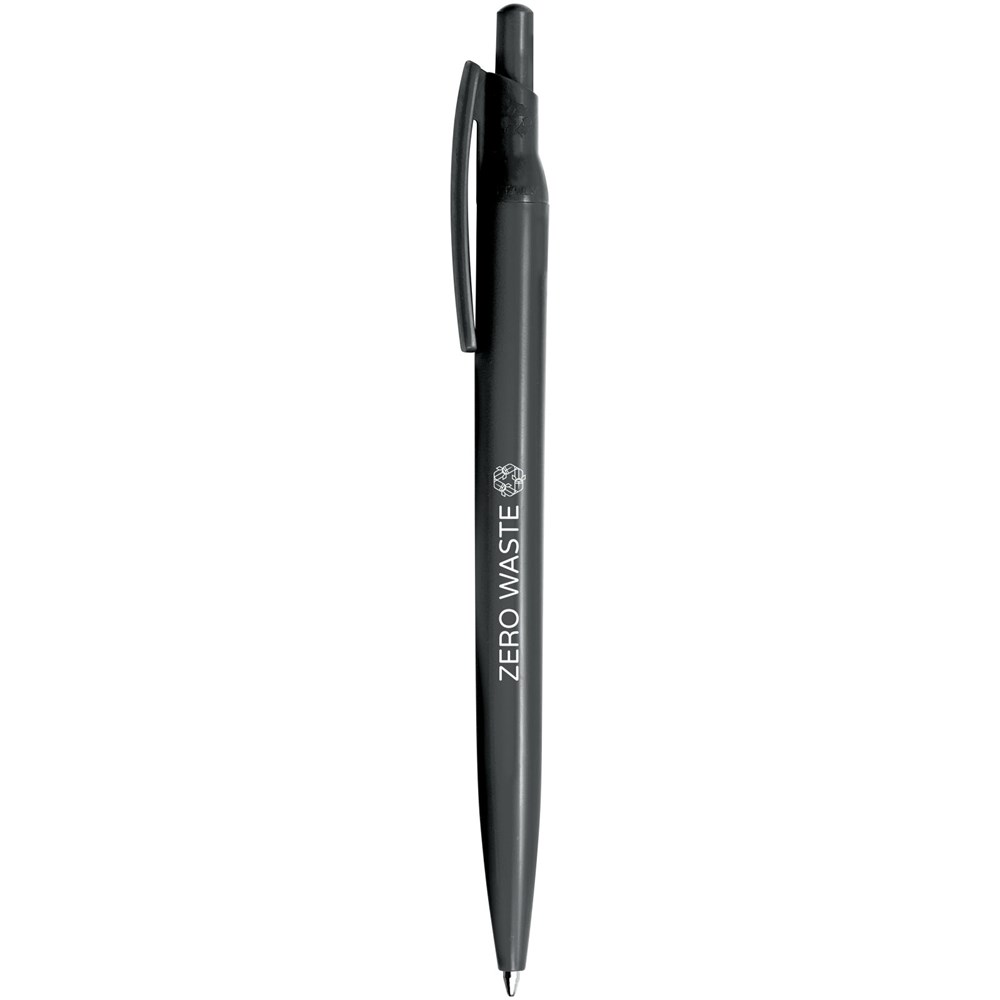 Click Action balpen gemaakt van gecertificeerd gerecycleerd PET afkomstig van na verbruik gerecycleerd afval van waterflessen en frisdrankflessen (behalve de navulling en de veer). Eén 500 ml fles wordt gebruikt om één balpen te produceren. Bevat een Europese x20 vulling met Documental inkt en een schrijflengte van ongeveer 2000 meter. Ook verkrijgbaar met een vulling van blauwe inkt (107723). Gemaakt in Italie