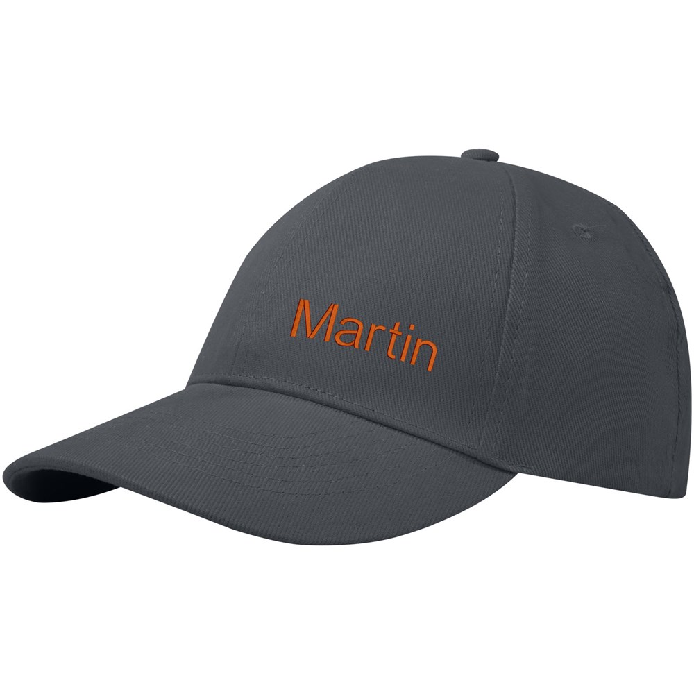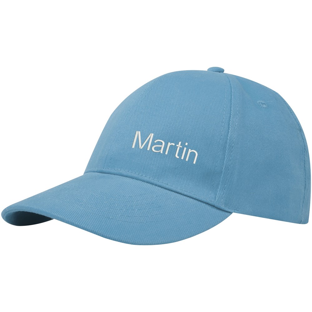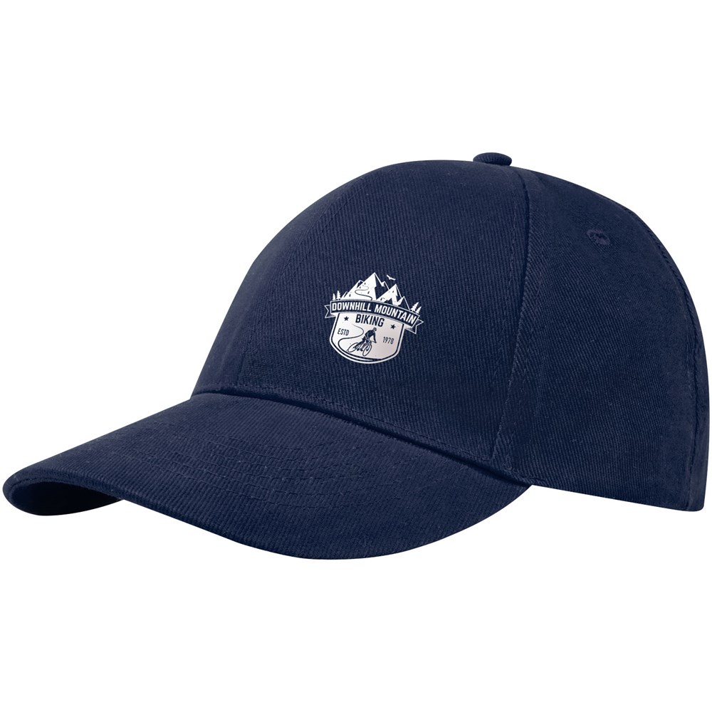 Duurzame promotionele cap. Voorgebogen vizier. Geborduurde oogjes voor ventilatie. Tri-glide metalen gespsluiting.