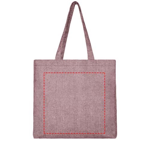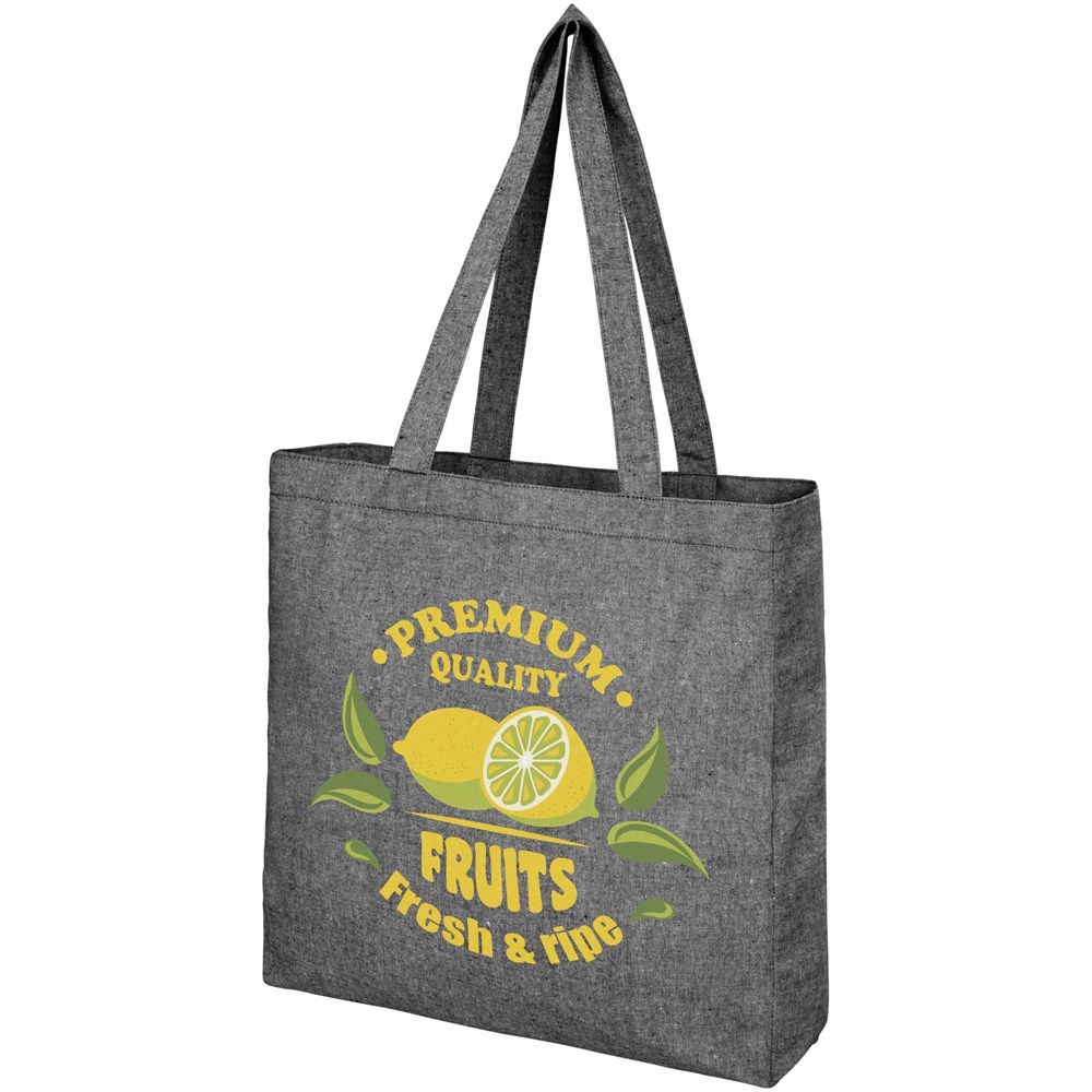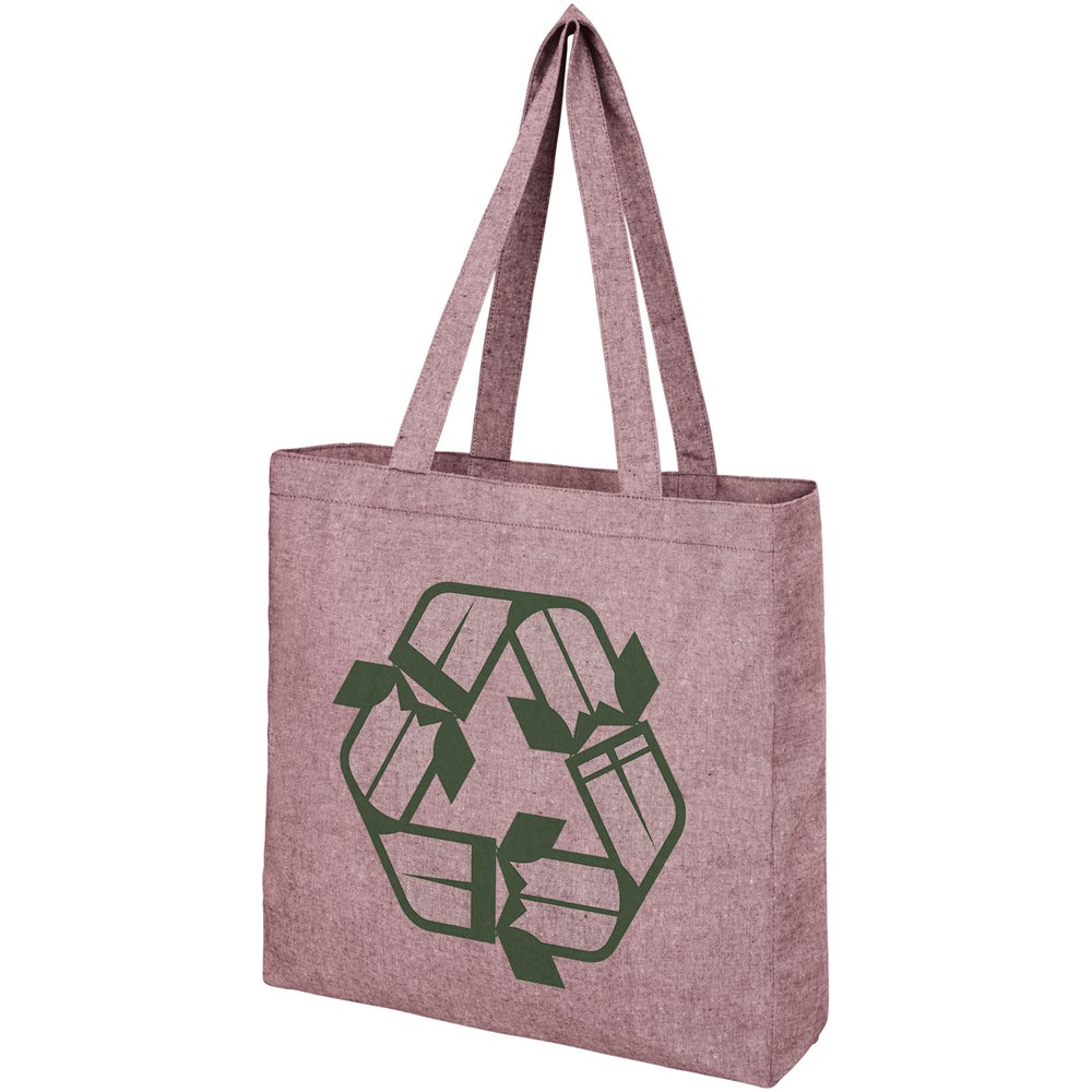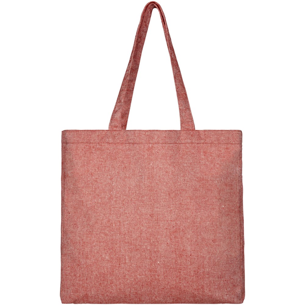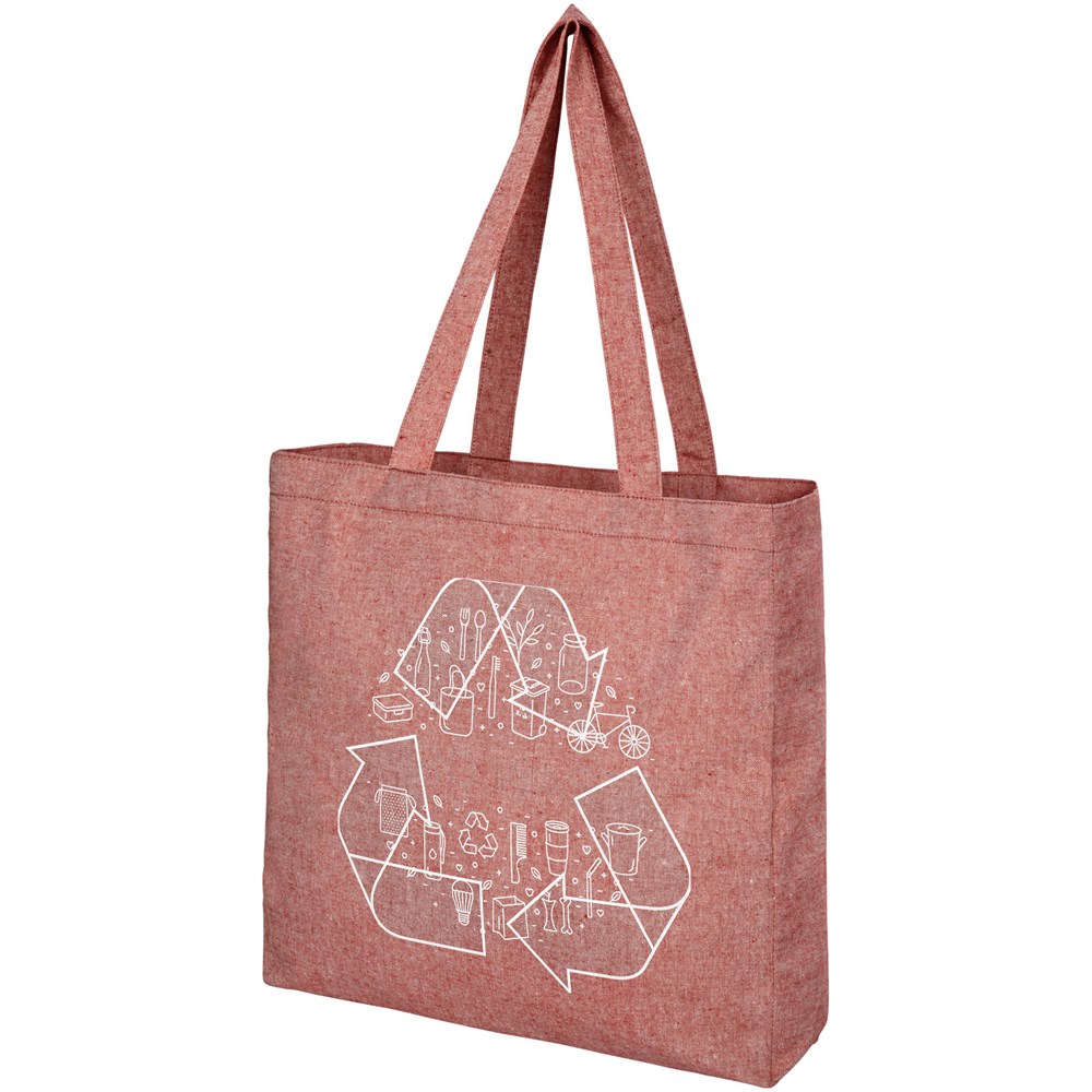 Draagtas gemaakt van 210 g/m² gerecycled katoen polyester mix. Gerecycled katoen wordt vervaardigd uit voor consumenten bestemd afval dat in textielfabrieken tijdens het snijproces wordt geproduceerd. Draagtas met inzetstuk en groot hoofdvak. Voorzien van twee handgrepen met een lengte van 31 cm. Geschikt voor een gewicht tot 10 kg. Er kunnen door de wijze van produceren kleine variaties voorkomen in de kleur van het eigenlijke product.