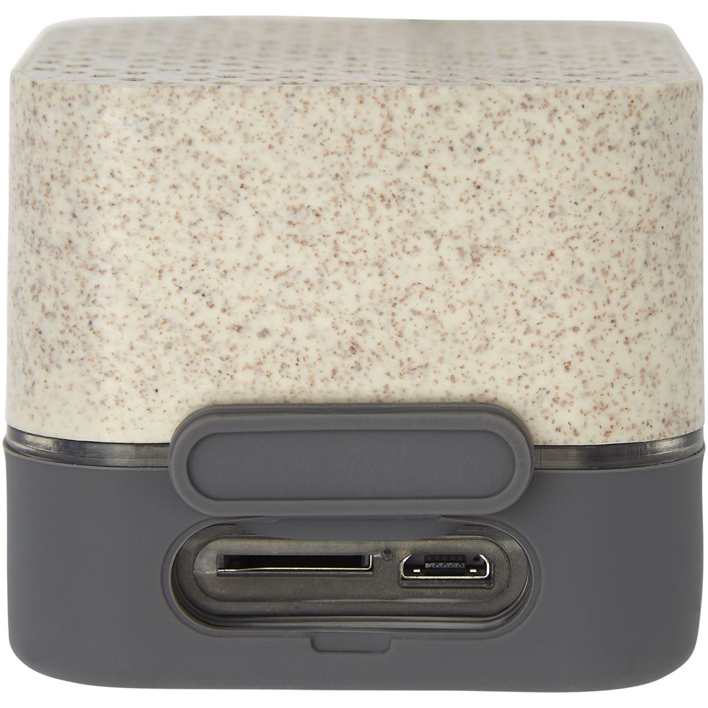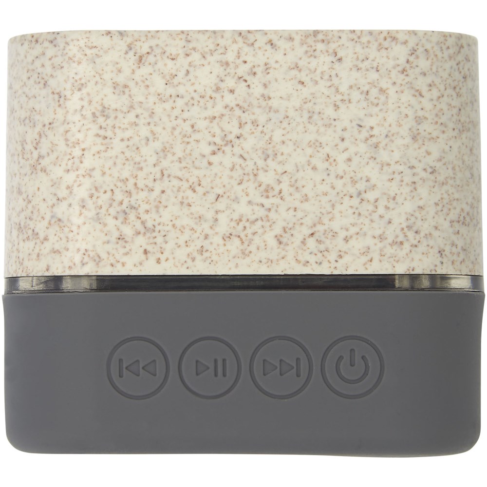 Tarwestro Bluetooth® 5.0-speaker gemaakt van 51% tarwestro en 49% PP-materiaal. Beschikt over een ingebouwde oplaadbare lithium-ion batterij van 350 mAh die tot 1,5 uur afspeeltijd levert bij maximaal volume. Met een luidsprekeruitgang van 3 watt en ingebouwde muziekbedieningselementen/microfoon is de Aira Bluetooth®-speaker de perfecte desktopspeaker. Verpakt in een geschenkverpakking en geleverd met een gebruiksaanwijzing (beide gemaakt van duurzaam materiaal). Geleverd met micro-USB-oplaadkabel.