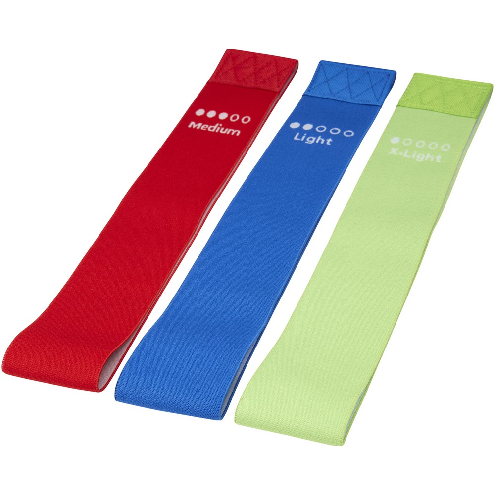 Een perfecte set allround yogabanden voor mannen en vrouwen voor een geweldige training in huis. De set bestaat uit 3 lichtgewicht weerstandsbanden (60 x 5 cm) met gemiddelde weerstand, ideaal voor het trainen van bilspieren, benen, dijen en buikspieren. De banden zijn gemaakt van zacht polyester en hebben een comfortabele, antislip latexlaag aan de binnenkant voor een stevige grip tijdens het sporten. De set wordt geleverd met een opbergzak (20 x 10 cm) van gerecycled PET plastic, met een geweldig oppervlak voor het bedrukken van een logo.