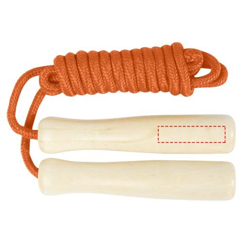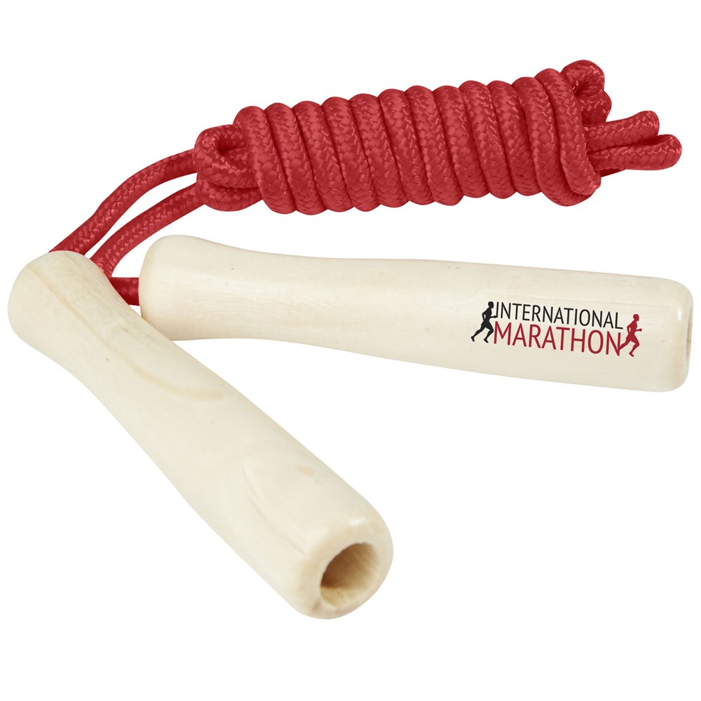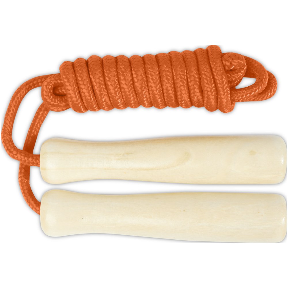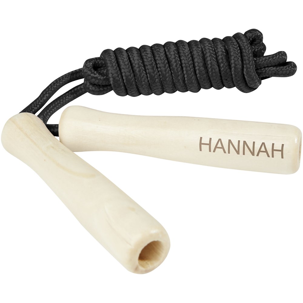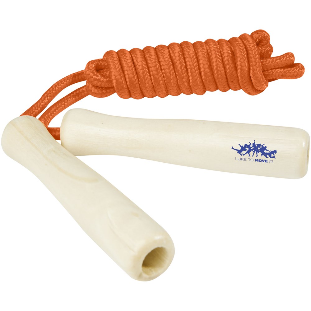Combineer plezier en beweging met dit springtouw voor kinderen. Het polyester touw is verkrijgbaar in verschillende aantrekkelijke kinderkleuren en de handvatten zijn van hout. De lengte van het touw is 245 cm, waardoor kinderen tot 160 cm gemakkelijk kunnen springen. Lasergraveren wordt aanbevolen als een duurzame decoratieoptie.
