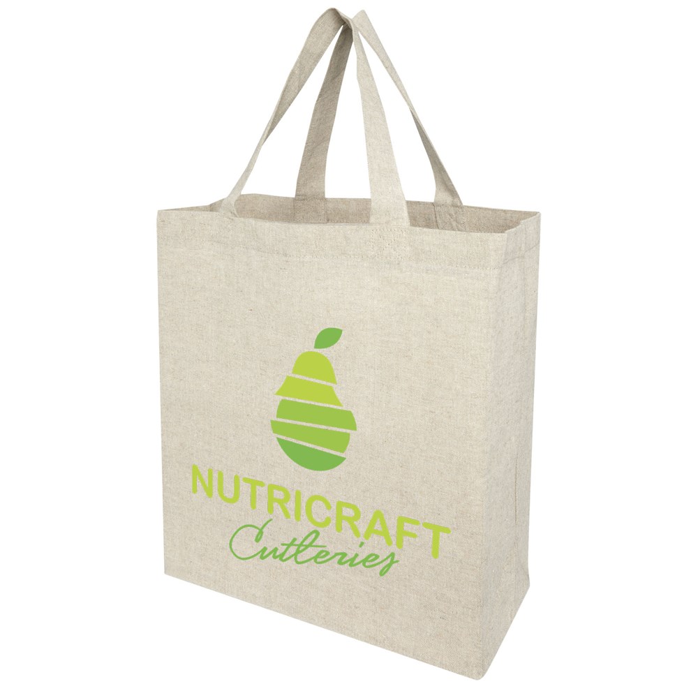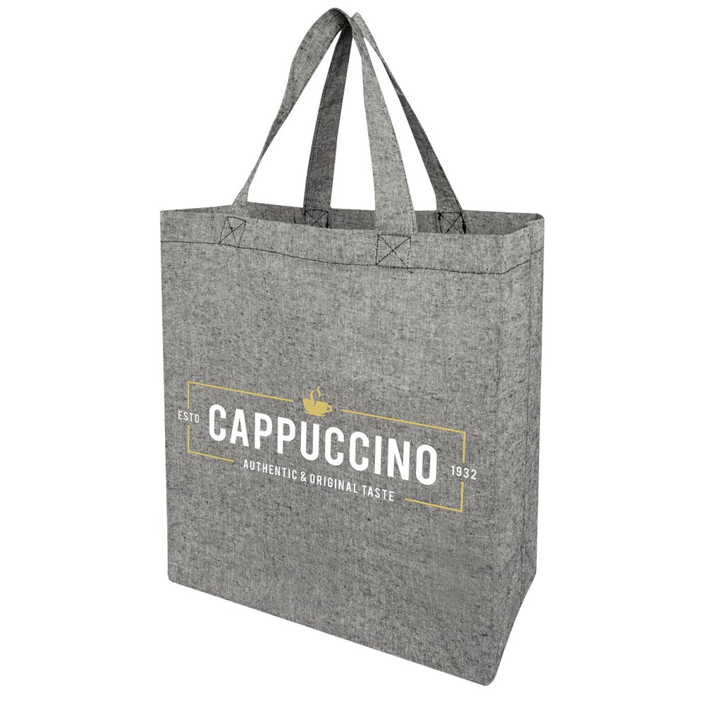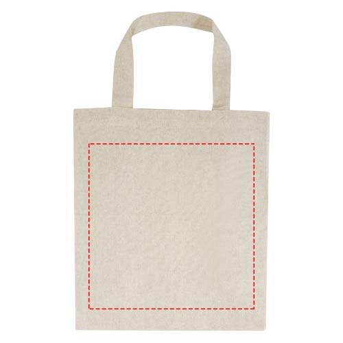 Deze Pheebs draagtas is sterk en duurzaam dankzij de gerecyclede katoenen keperstof van 150 g/m². De handgreep is 18,5 cm lang. De tas is gemaakt van pre-consumer afval dat door fabrieken wordt gegenereerd tijdens het snijproces van de stoffen. Wordt geleverd met een stevige bodemplaat.