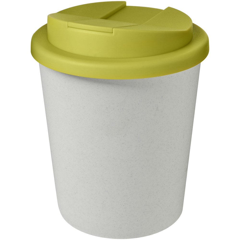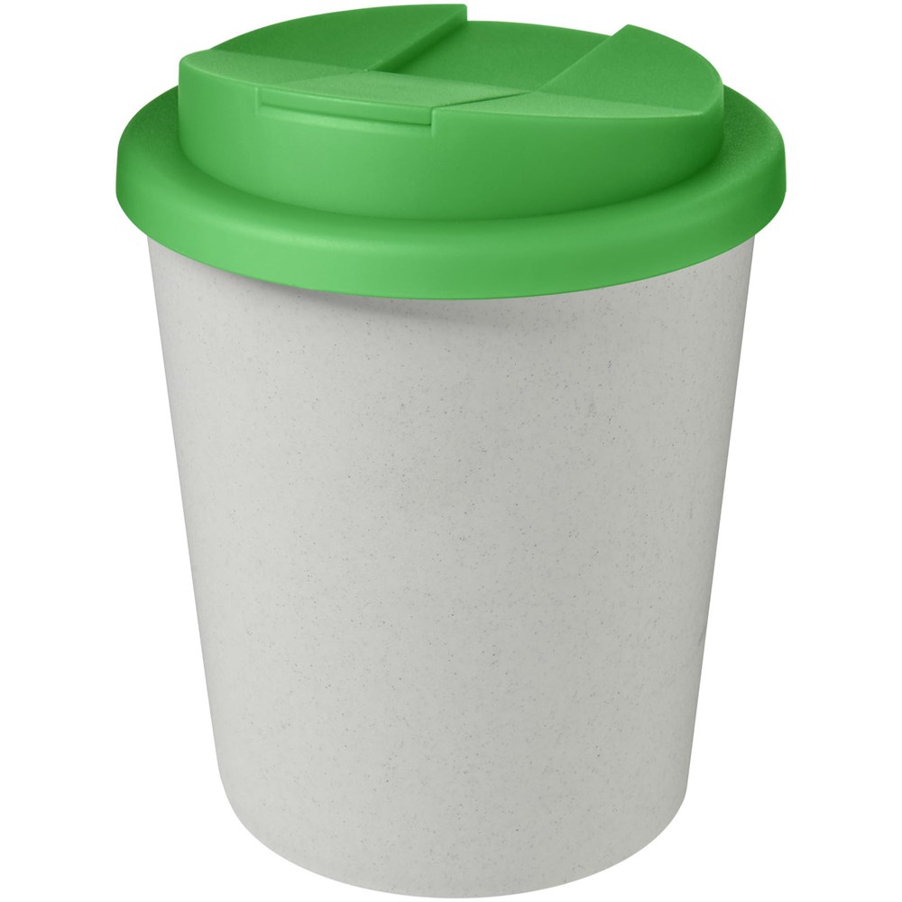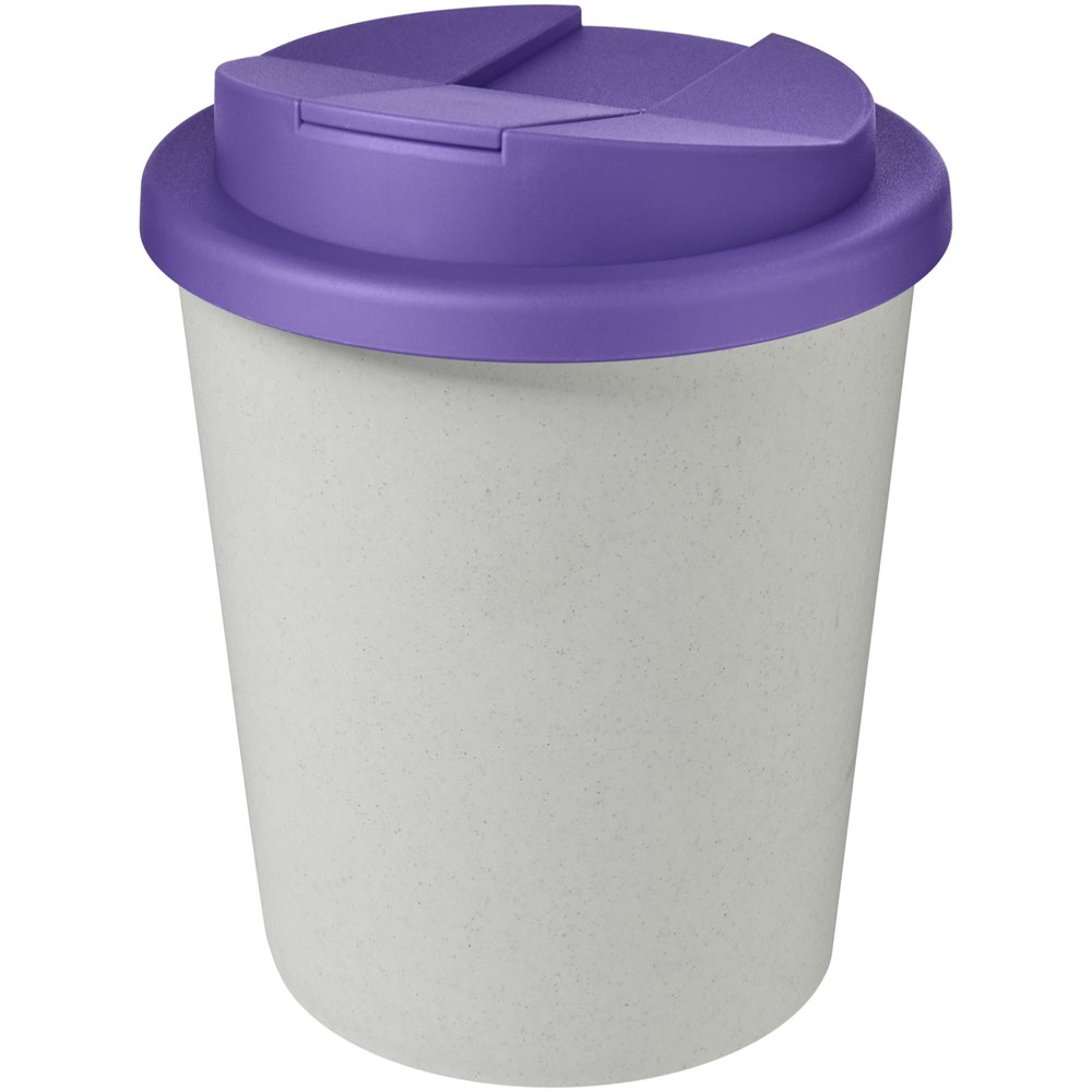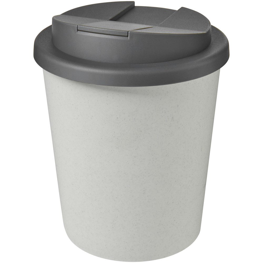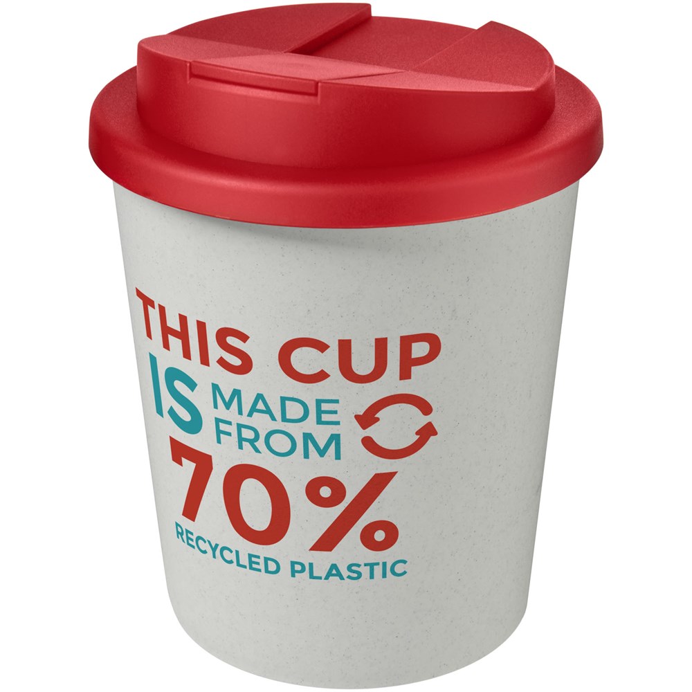 Dubbelwandig geïsoleerde beker met veilig knoeibestendig draaideksel. Het deksel klikt vast om knoeien beter te voorkomen, en is vervaardigd zonder siliconen voor een volledig recyclebare drinkbeker. De beker is gemaakt van 100% gerecycled PP kunststof en het deksel is gemaakt van voedselveilig PP kunststof. Inhoud 250 ml Verpakt in een thuis composteerbare polybag. Gemaakt in het Verenigd Koninkrijk.