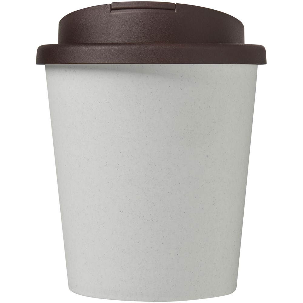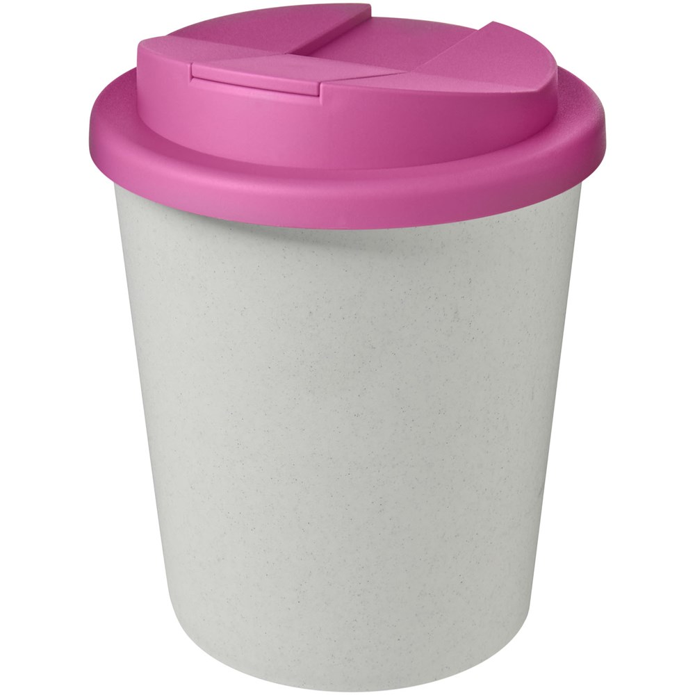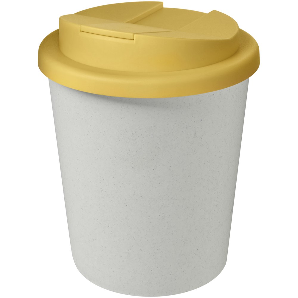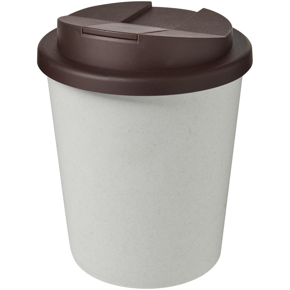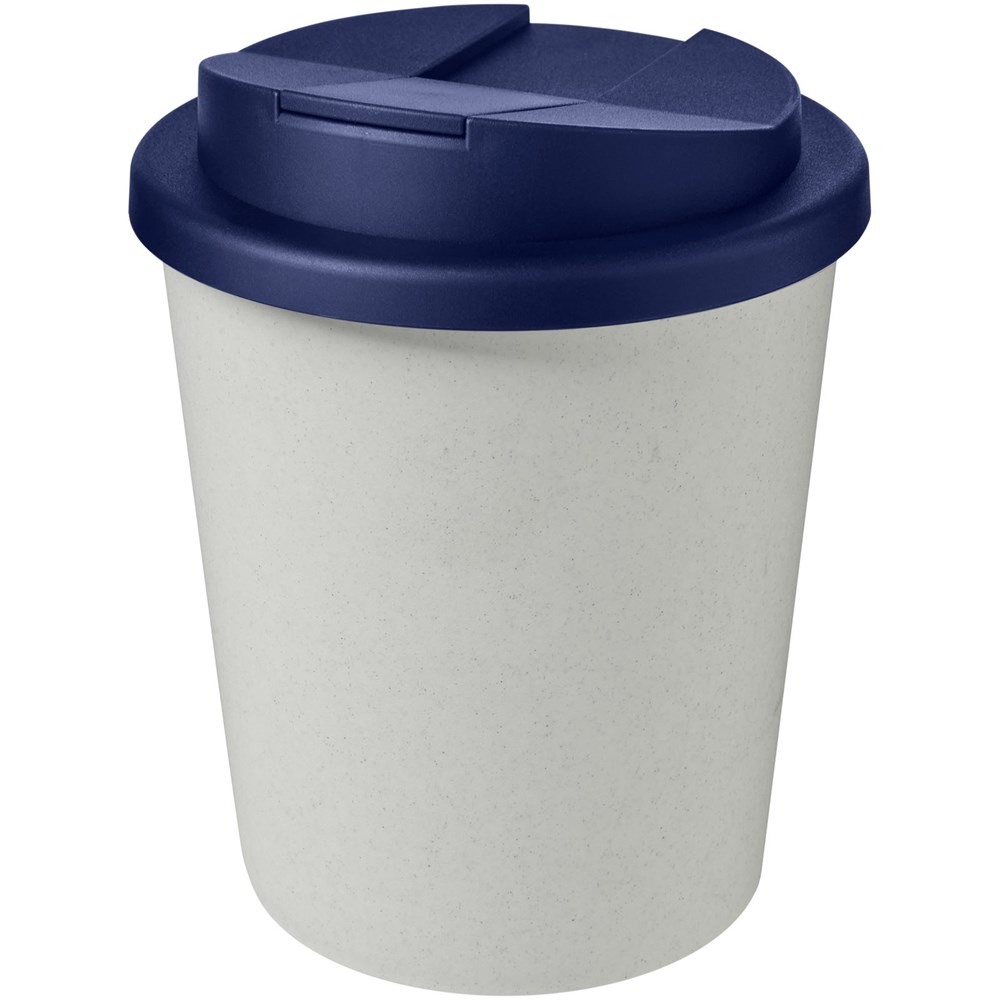 Dubbelwandig geïsoleerde beker met veilig knoeibestendig draaideksel. Het deksel klikt vast om knoeien beter te voorkomen, en is vervaardigd zonder siliconen voor een volledig recyclebare drinkbeker. De beker is gemaakt van 100% gerecycled PP kunststof en het deksel is gemaakt van voedselveilig PP kunststof. Inhoud 250 ml Verpakt in een thuis composteerbare polybag. Gemaakt in het Verenigd Koninkrijk.