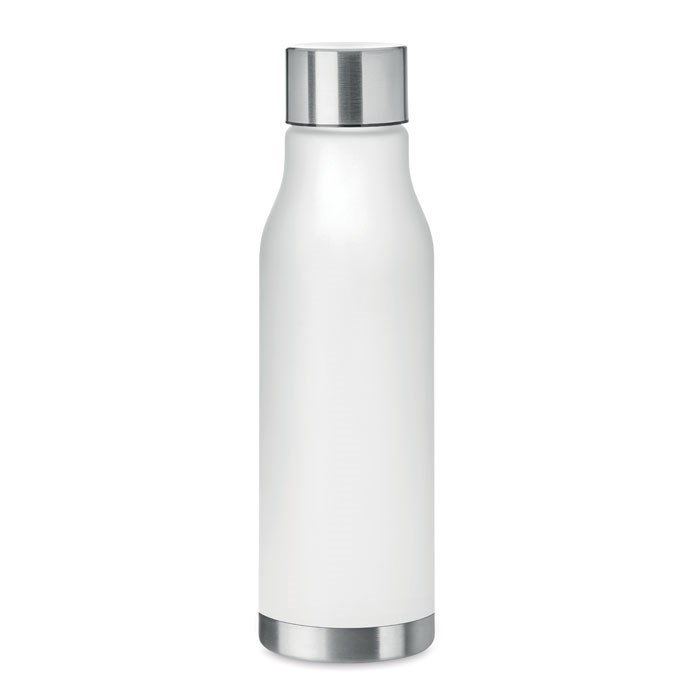 Lekvrije RPET drinkfles met rubber finish en roestvrijstalen dop met RPET binnenwerk en siliconen ring. Inhoud 600ML. Niet geschikt voor koolzuurhoudende drankenLekvrij.