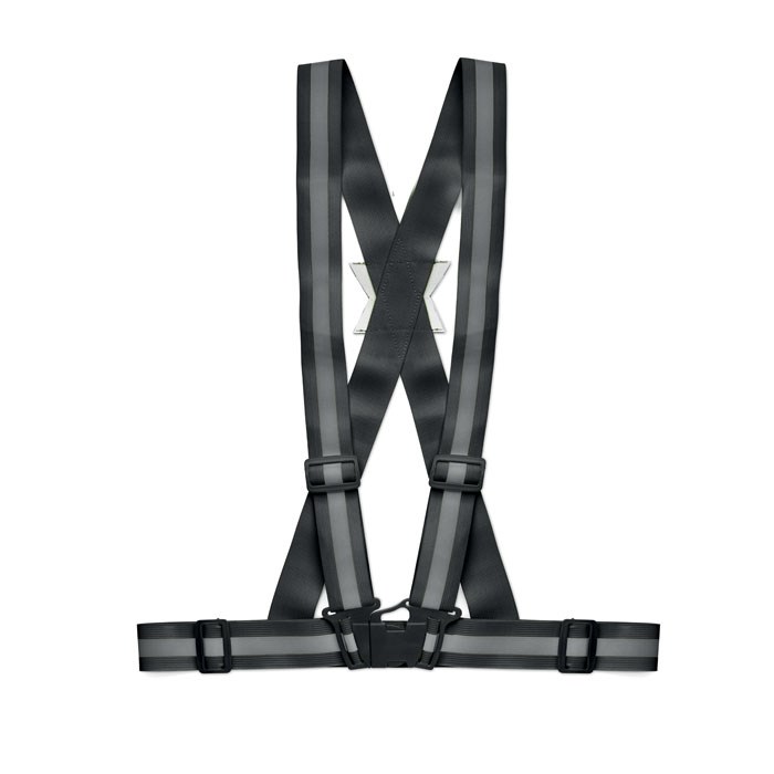 Verstelbare draagriem met 360° hoge zichtbaarheid door de reflecterende zilverkleurige strepen. Zorgt voor extra zichtbaarheid tijdens outdoor activiteiten in schemer en donker.