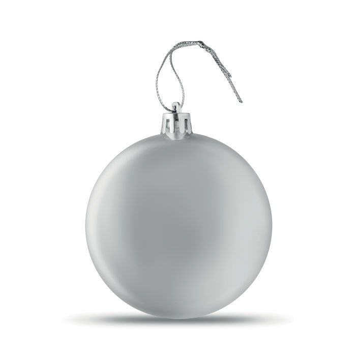 Ronde afgeplatte kerstbal in PP met metalen spuitlaag met linthanger.