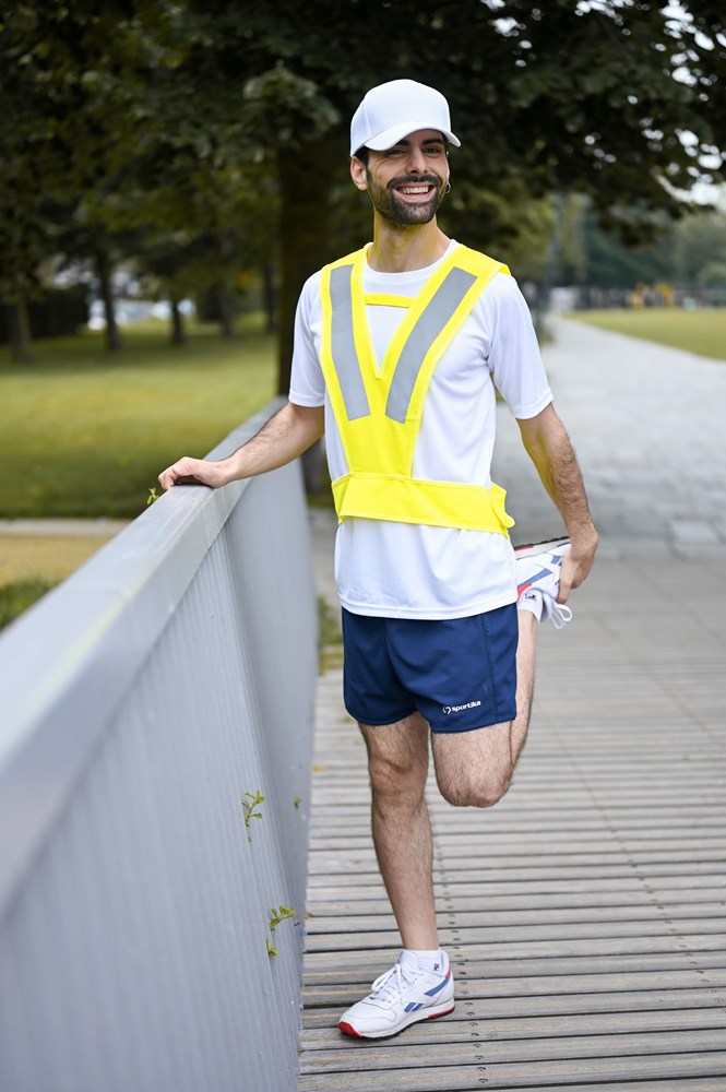 Zorg voor een maximale bewegingsvrijheid met dit veiligheidsvest in v-vorm. Met de reflecterende strepen voor en achter ben je goed zichtbaar voor andere weggebruikers tijdens je training buiten. Het vest is verstelbaar door middel van klittenband aan de zijkanten.