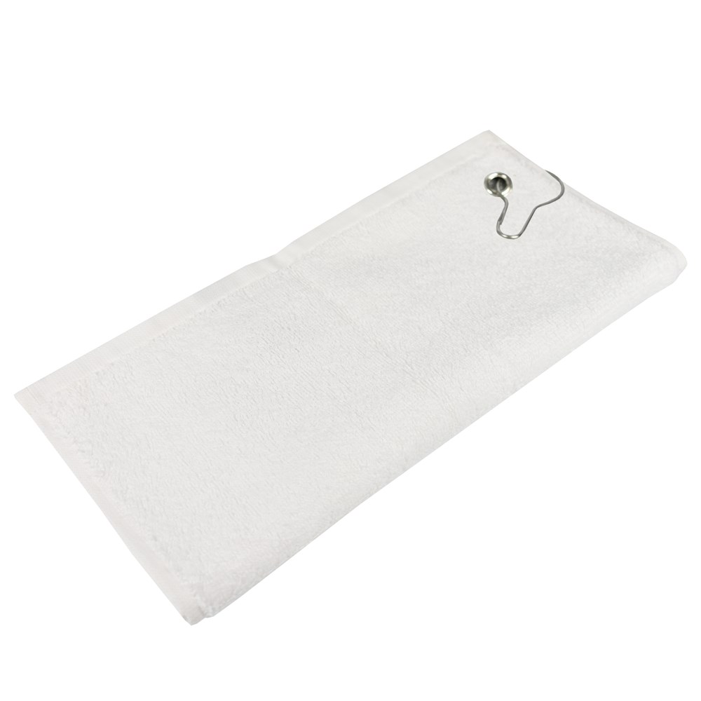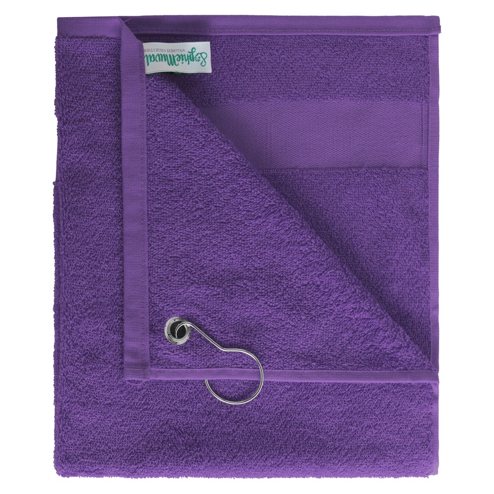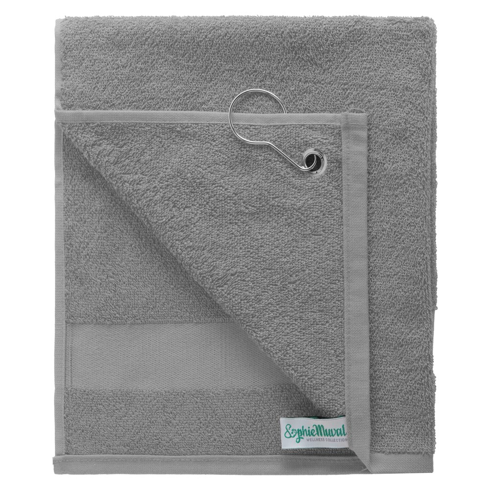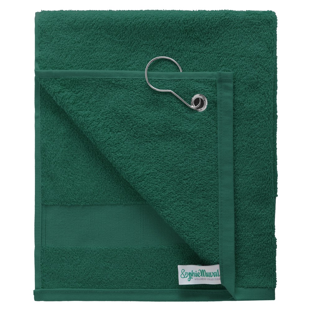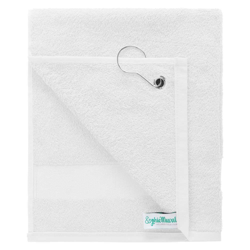 Deze handige Sophie Muval Golfhanddoek met clip is te voorzien van een borduring of zeefdruk. De handdoek heeft een band 55x30cm en een grammage van 450 gr/m2.