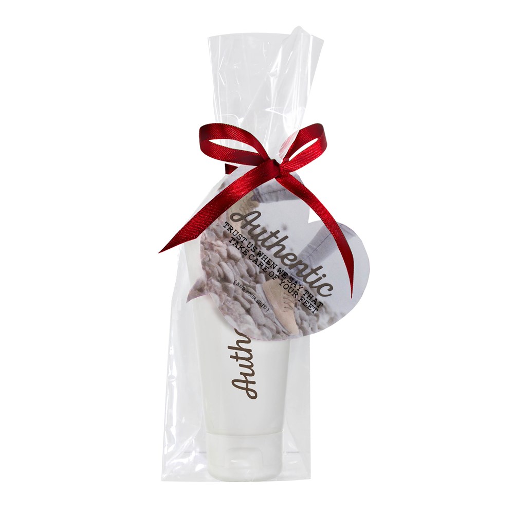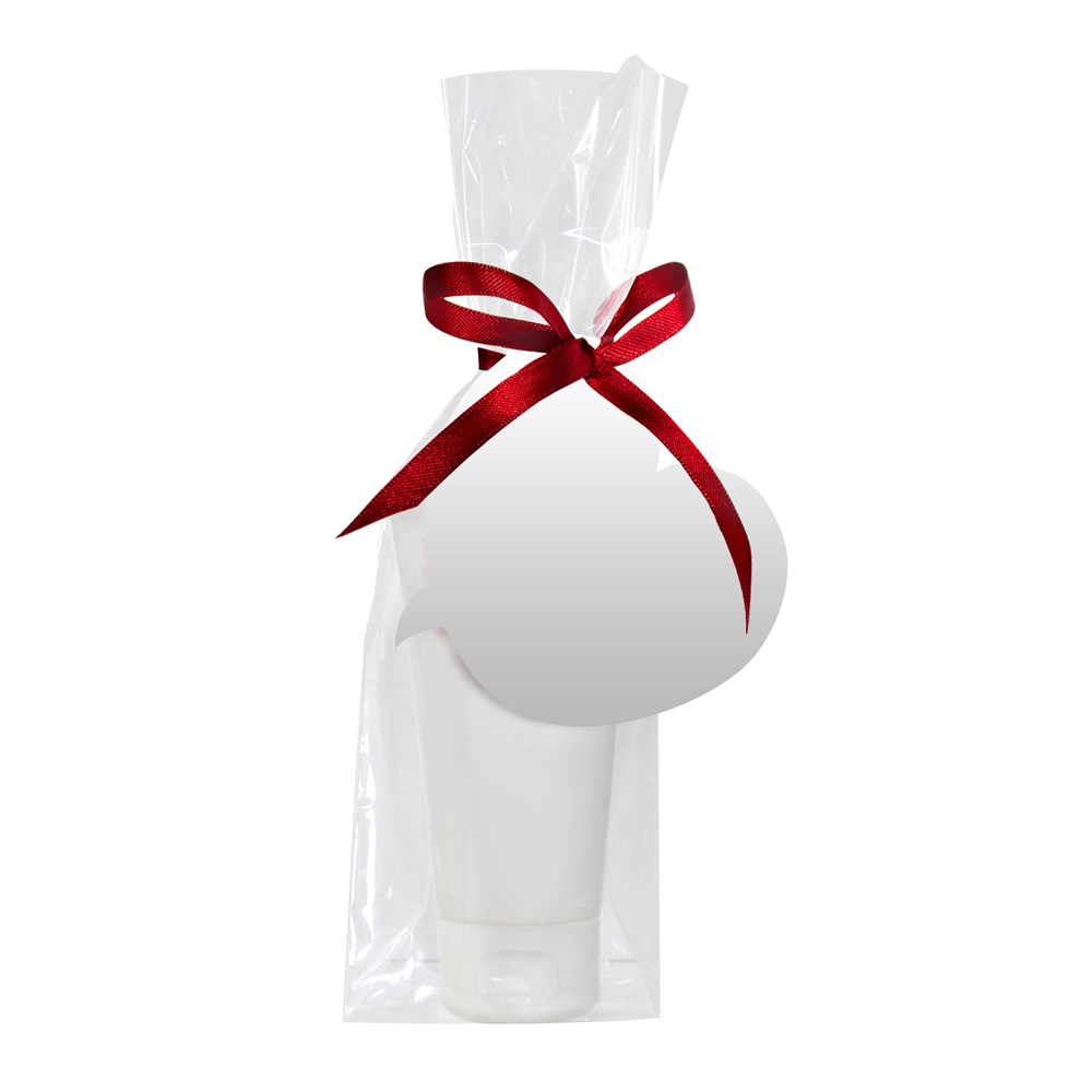 Geef een product nog leuker weg in een zakje met eigen full colour bedrukt kaartje in eigen vorm en lint