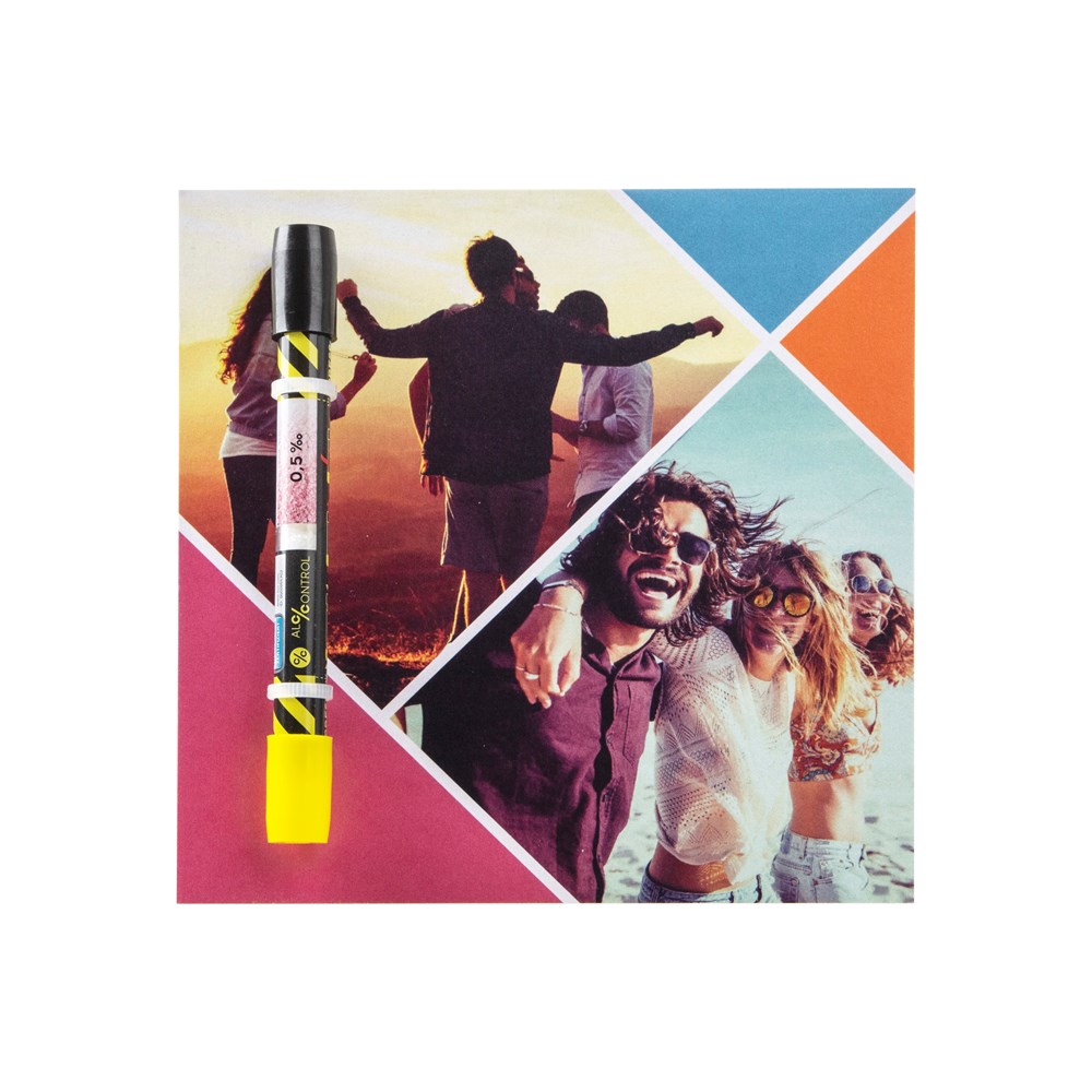 TÜV gecertificeerde alcoholtester op een vierkante kaart (2-zijdig bedrukt), geeft binnen 2 minuten de uitslag