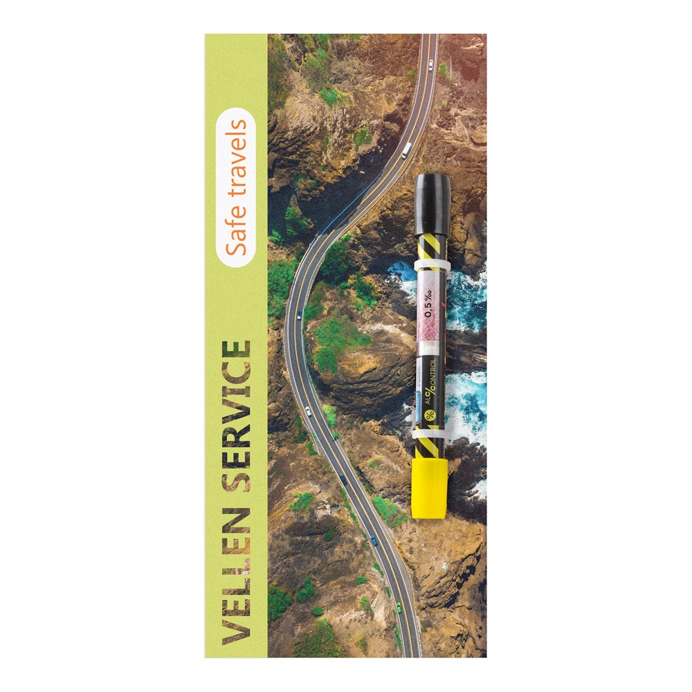 TÜV gecertificeerde alcoholtester op een rechthoekige kaart (2-zijdig bedrukt), geeft binnen 2 minuten de uitslag