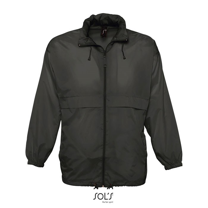 SOL'S SURF Windbreaker unisex 210g/m². Zonder twijfel de meest competitieve op de markt. Onderscheidt zich van de concurrentie met zijn twee buitenzakken met rits. Een kap verstopt achter ritssluiting in de kraag en ventilatiegaatjes. 100% nylon 210 T. Waterdicht. Ritssluiting. Kap met rijgkoord opgeplooid in de kraag. 2 Buitenzakken met rits. Opvouwbaar in zakje dat met een elastiek aan de taill
