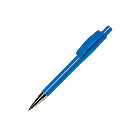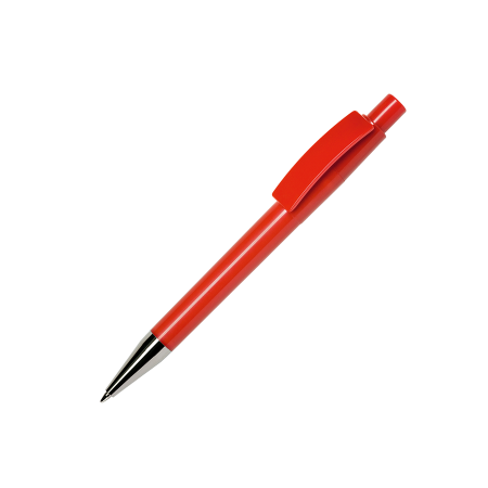Maxema balpen NEXT NX400 C CR, met glanzend gekleurde houder, clip en drukker, met verchroomd puntstuk. Voorzien van Jumbo vulling met blauwe Dokumental inkt voor tot 2.500 meter schrijfplezier. Boven- en onderstuk van de pen zijn leverbaar in maar liefst 10 kleuren en zijn vanaf 2.000 stuks onderling qua kleur te combineren.