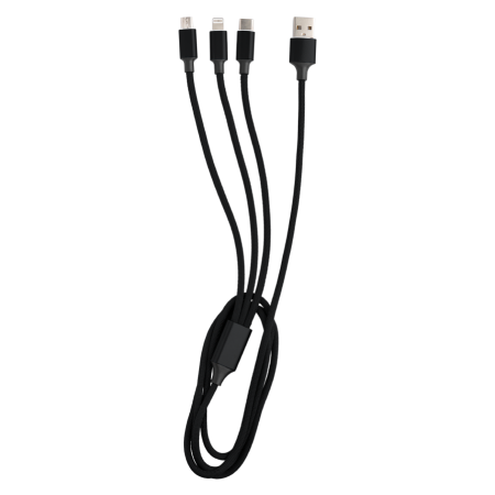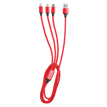 3 in 1 laadkabel ampere met metalen logoplaatje, 3 amps, textiel en metaal
