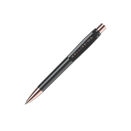 Maxema balpen MOOD MD1 C M3 met glanzende gekleurde houder en clip, rosé goudkleurig metalen puntstuk en drukker. Voorzien van Parker vulling met blauwe Dokumental inkt voor tot 4.000 meter schrijfplezier. Houders en clips leverbaar in 2 kleuren die per onderdeel vanaf 2.000 onderling te combineren zijn