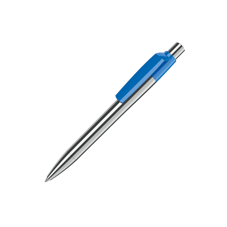 Maxema balpen MOOD METAL MD1 M M1 met metalen chroomkleurige houder, puntstuk en drukker, met glanzende gekleurde clip. Voorzien van Parker vulling met blauwe Dokumental inkt voor tot 4.000 meter schrijfplezier. Clips leverbaar in maar liefsts 23 kleuren.