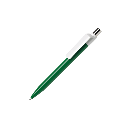 Maxema balpen DOT D1 CB CR met glanzende gekleurde houder en glanzende witte clip, met glanzend gekleurd element in de verchroomde drukker. Voorzien van Jumbo vulling met blauwe Dokumental inkt voor tot 2.500 meter schrijfplezier. Houders, clips en element in drukker leverbaar in maar liefst 19 kleuren die per onderdeel vanaf 2.000 onderling te combineren zijn