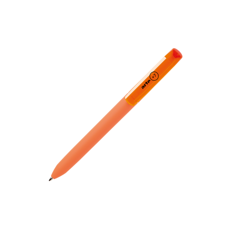 Maxema balpen FLOW PURE F2P GOM 30 F, draaibalpen met houder en bovenstuk in fluor kleuren voorzien van rubber coating, glanzende transparante clip in fluor kleuren. Voorzien van Jumbo vulling met blauwe Dokumental inkt voor tot 2.500 meter schrijfplezier. Leverbaar in maar liefst 5 kleuren welke vanaf 2.000 stuks onderling qua kleur gecombineerd kunnen worden.