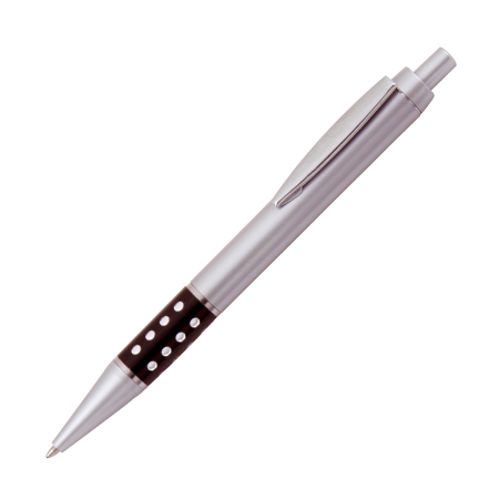 ARRAN kunststof balpen Peekay, met metalen clip en opvallend gekleurde gripzone met grijze gaten en een blauwschrijvende kunststof langschrijfvulling.