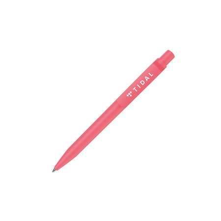 Maxema balpen DOT D1 MATT F met matte fluorkleurige houder, clip en drukker, glanzend fluorkleurig element in de drukker. Voorzien van Jumbo vulling met blauwe Dokumental inkt voor tot 2.500 meter schrijfplezier. Houders en element in drukker leverbaar in maar liefst 5 kleuren welke per onderdeel vanaf 2.000 stuks onderling te combineren zijn.