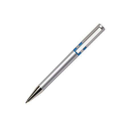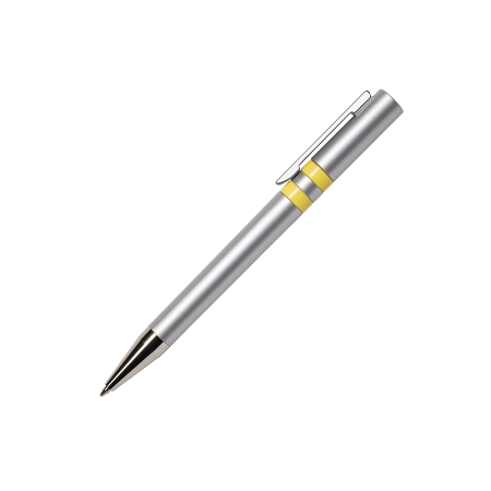 Maxema balpen ETHIC ET900 AL, draaibalpen met aluminium kleurige houder, bovenstuk en middelste ring, 2 glanzend gekleurde ringen en element in de top van het bovenstuk, verchroomde clip en puntstuk. Voorzien van Jumbo vulling met blauwe Dokumental inkt voor tot 2.500 meter schrijfplezier. De onderdelen van de pen zijn leverbaar in diverse kleuren en zijn vanaf 2.000 stuks onderling qua kleur te combineren.
