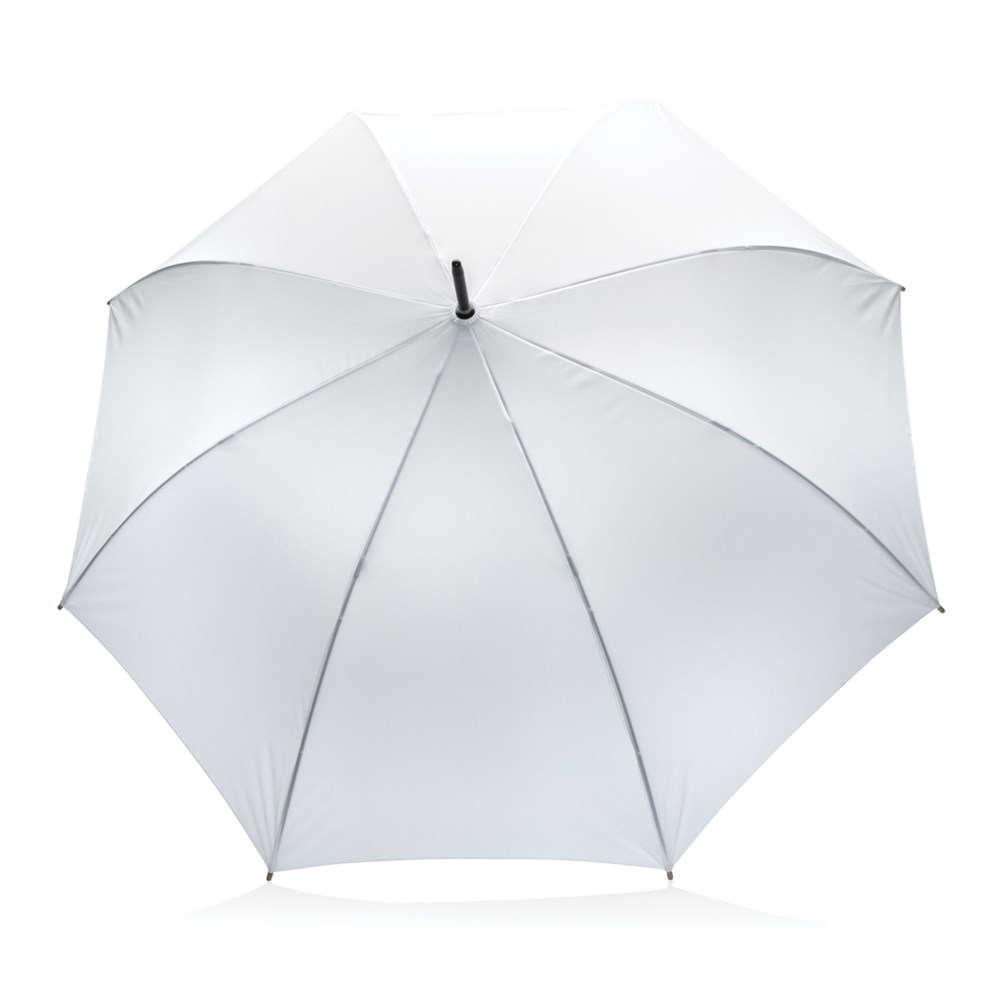 Geen greenwashing, maar een eerlijk verhaal over duurzaamheid! Deze Impact-paraplu is gemaakt van 190T RPET-pongee met AWARE™ -tracer. Met AWARE™ wordt het gebruik van echte gerecyclede stoffen en claims over waterreductie gegarandeerd door gebruik te maken van de unieke fysieke tracer en blockchain-technologie van AWARE™. Bespaar water en gebruik echte gerecyclede stoffen. Met de focus op water wordt 2% van de opbrengst van elk verkocht Impact-product gedoneerd aan Water.org. Deze grote, auto-open paraplu van 27 inch beschermt je tegen de regen, waar je ook bent. Metalen frame, glasvezelribben en stijlvol bamboe handvat. Het doek heeft 6.3 liter water bespaard en er zijn 10.7 PET-flessen(500ml) voor hergebruikt. Waterbesparing is gebaseerd op cijfers in vergelijking met conventionele vezels. Deze berekende indicatie is gebaseerd op betrouwbare LCA-gegevens zoals gepubliceerd door Textile Exchange in hun Material Snapshots 2016.