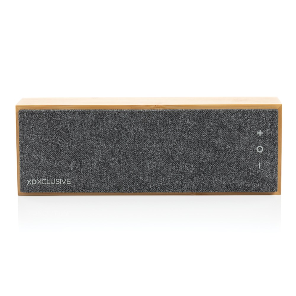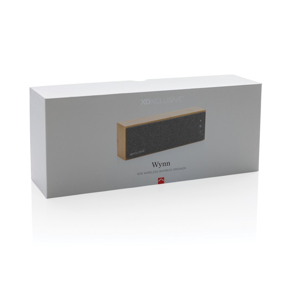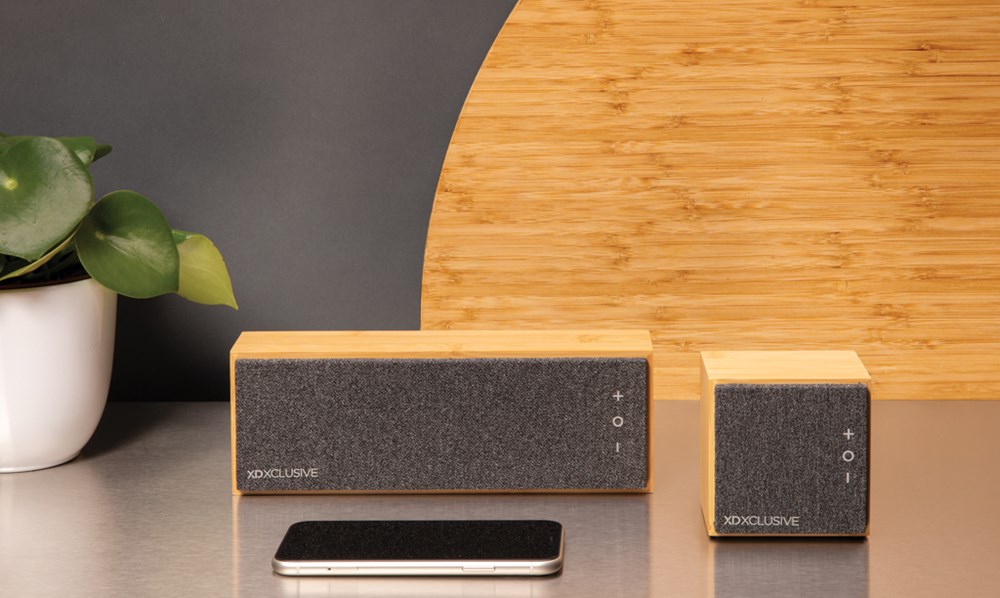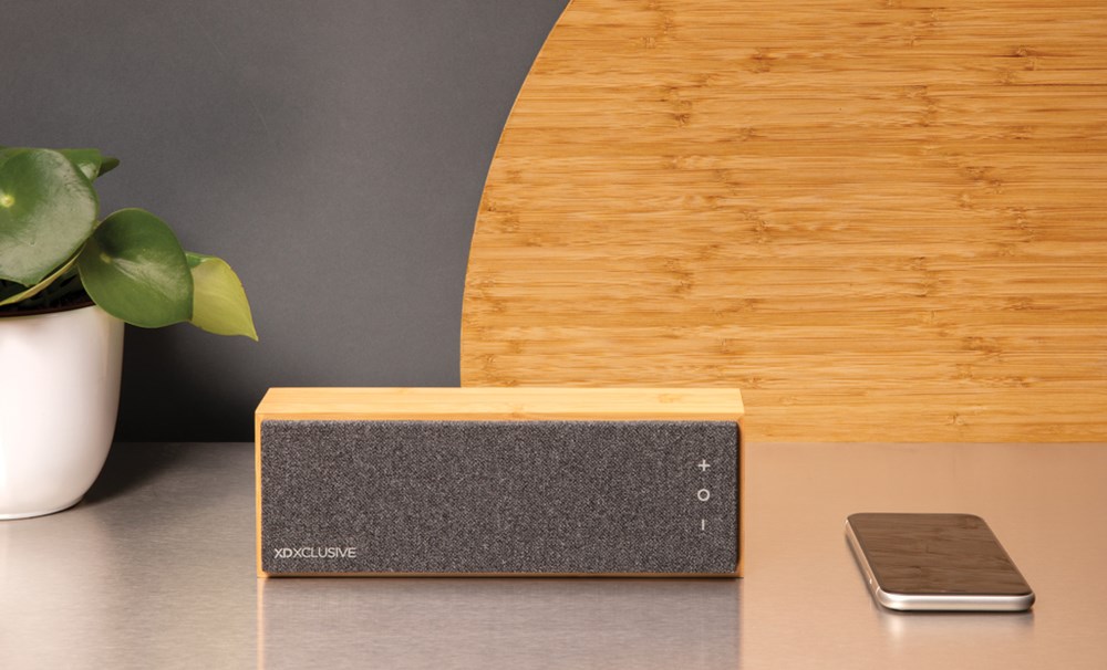 Luxe 10W speaker met helder geluid en sterke bas. De speaker is gemaakt van natuurlijk bamboe en stof. Een combinatie die overal in uw huis, kantoor of waar u uw favoriete muziek nodig heeft, goed staat. De luidspreker wordt geleverd met BT 5.0 voor een gemakkelijke en soepele bediening tot 10 meter en een laag stroomverbruik. De 2000 mAh-batterij maakt een speeltijd tot 6 uur mogelijk en kan in 2 uur volledig worden opgeladen. Met ophaalfunctie en microfoon om (video) oproepen te beantwoorden. Inclusief PVC-vrije micro-oplaadkabel van TPE-materiaal. Verpakt in luxe geschenkverpakking.